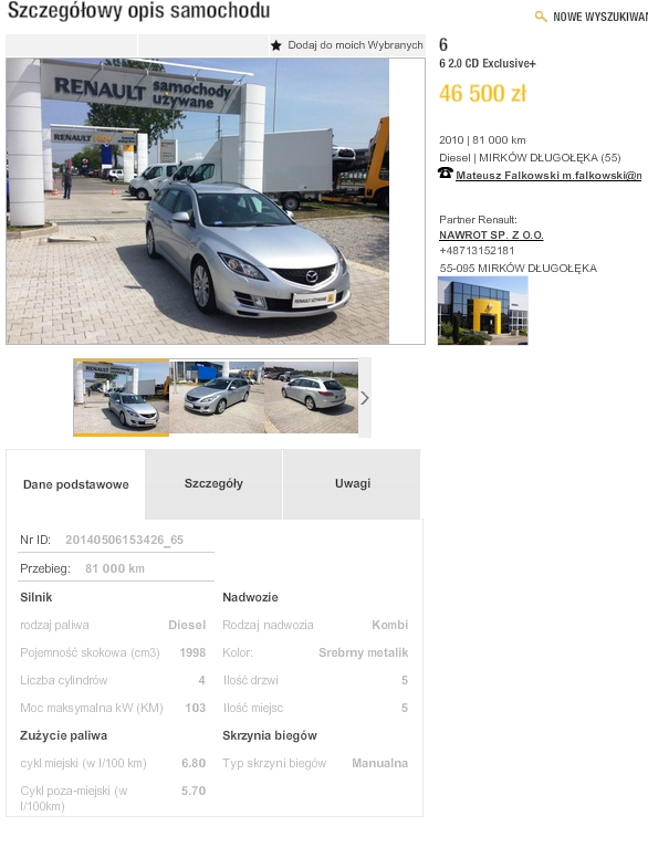 Co sądzicie o tej ofercie? W poniedziałek będę ten samochód testował, dziś zdążyłem jedynie odpalić silnik na parkingu i obejrzeć wnętrze. Wszystko wygląda po wstępnych oględzinach ok. Podobno lewy bok auta był lakierowany po jakimś drobnym zdarzeniu, ale auto jest na 100% bezwypadkowe.