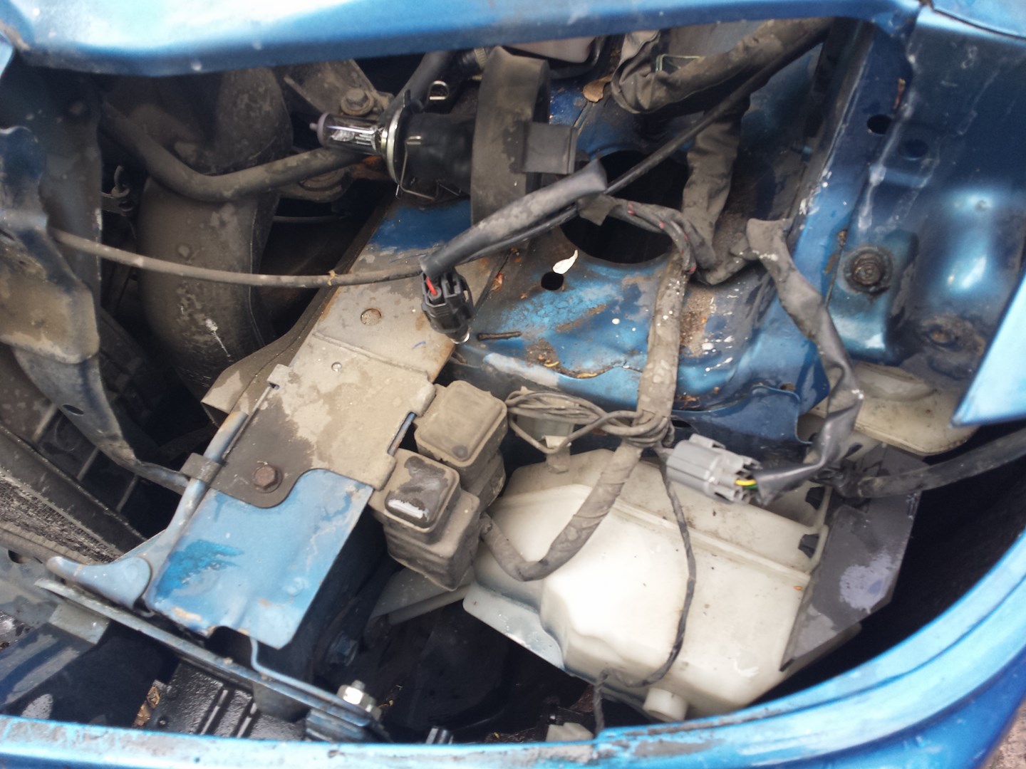 – Brak silniczka w lampie przedniej lewej, również urwany kierunek również z lewej strony.