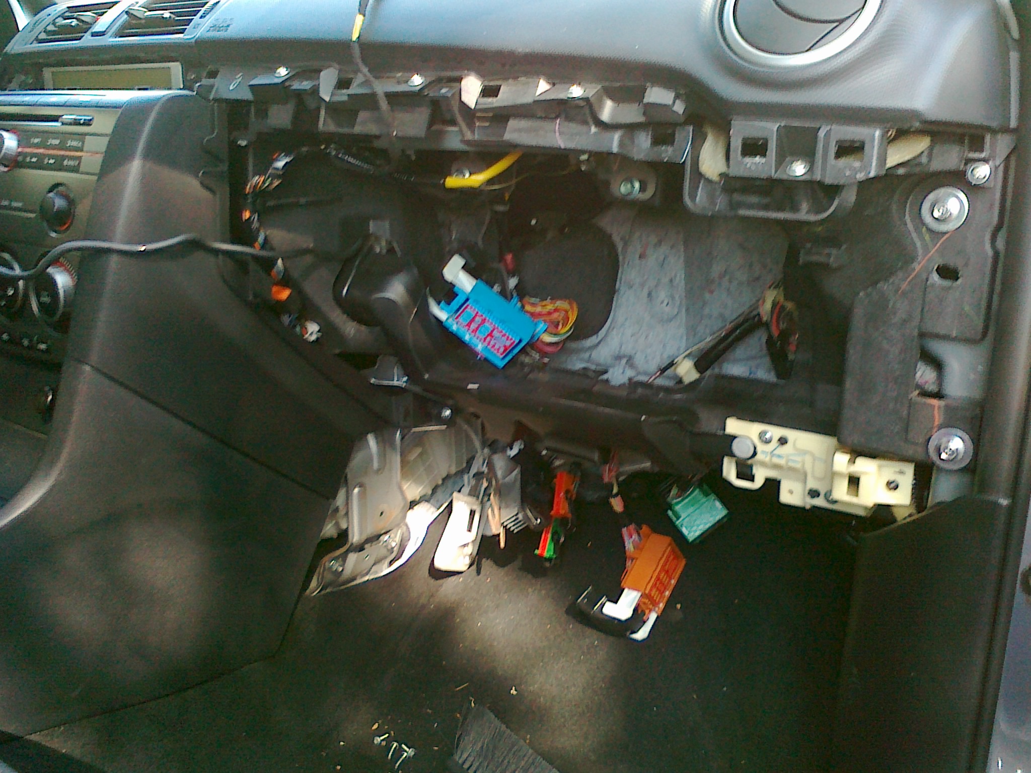 Dzis wymienialem filtr kabinowy w mazdzie 3 z kierownica po prawej stronie. Chcialbym nadmienic ze wyglada to tak samo jak z kierownica po lewej stronie. Bez wyciagniecia schowka sie nie odbylo, bezpiecznikow nie odpinalem. kombinacji co nie miara, ale sie udalo.