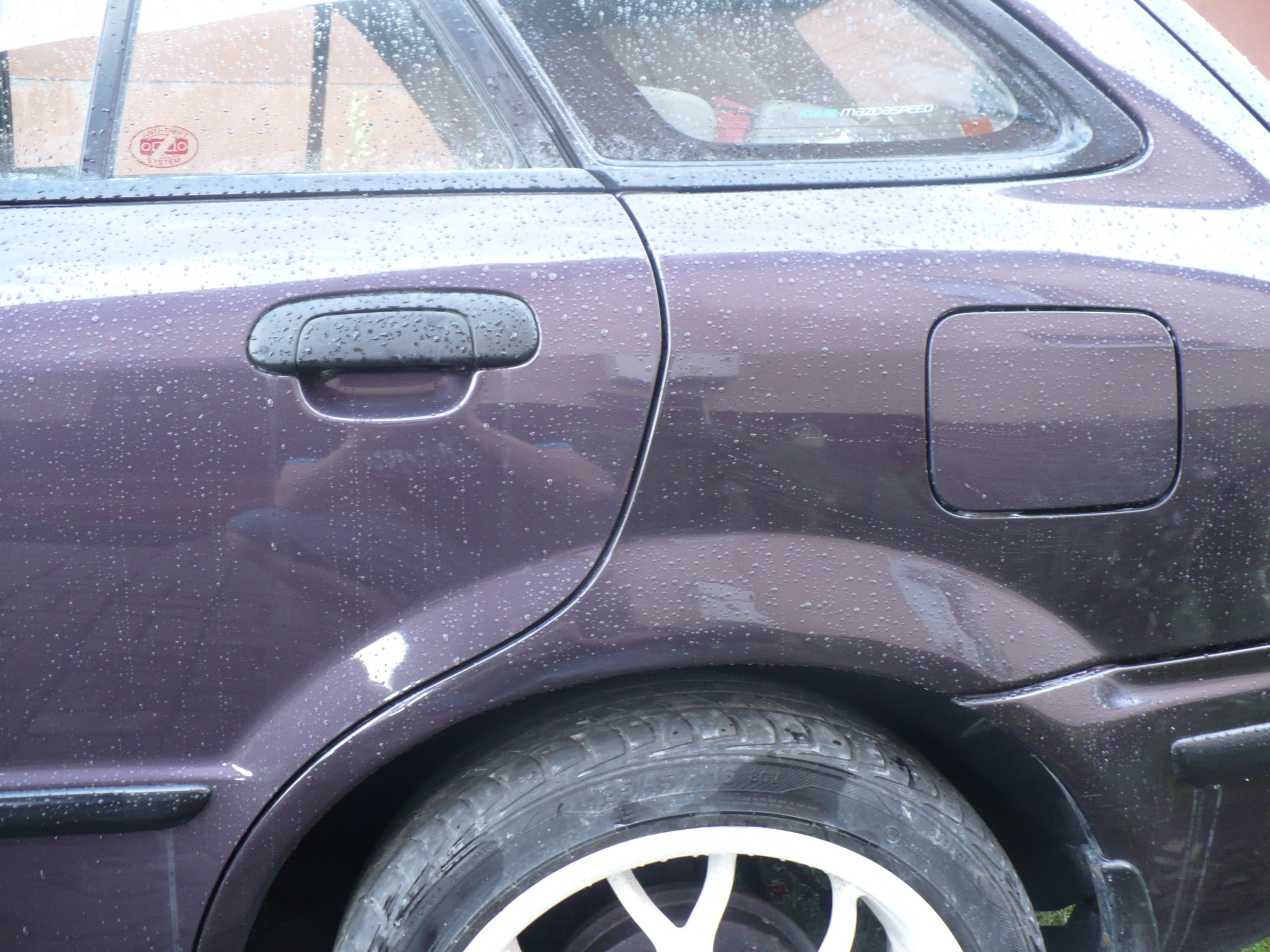 Dzięki choć teraz wygląda dosyć kiepsko, dostała od kogoś w tylne prawe nadkole, ktoś przerysował jej drzwi i zwiał a na dodatek stoi na dojazdówce bo zgiąłem felgę.