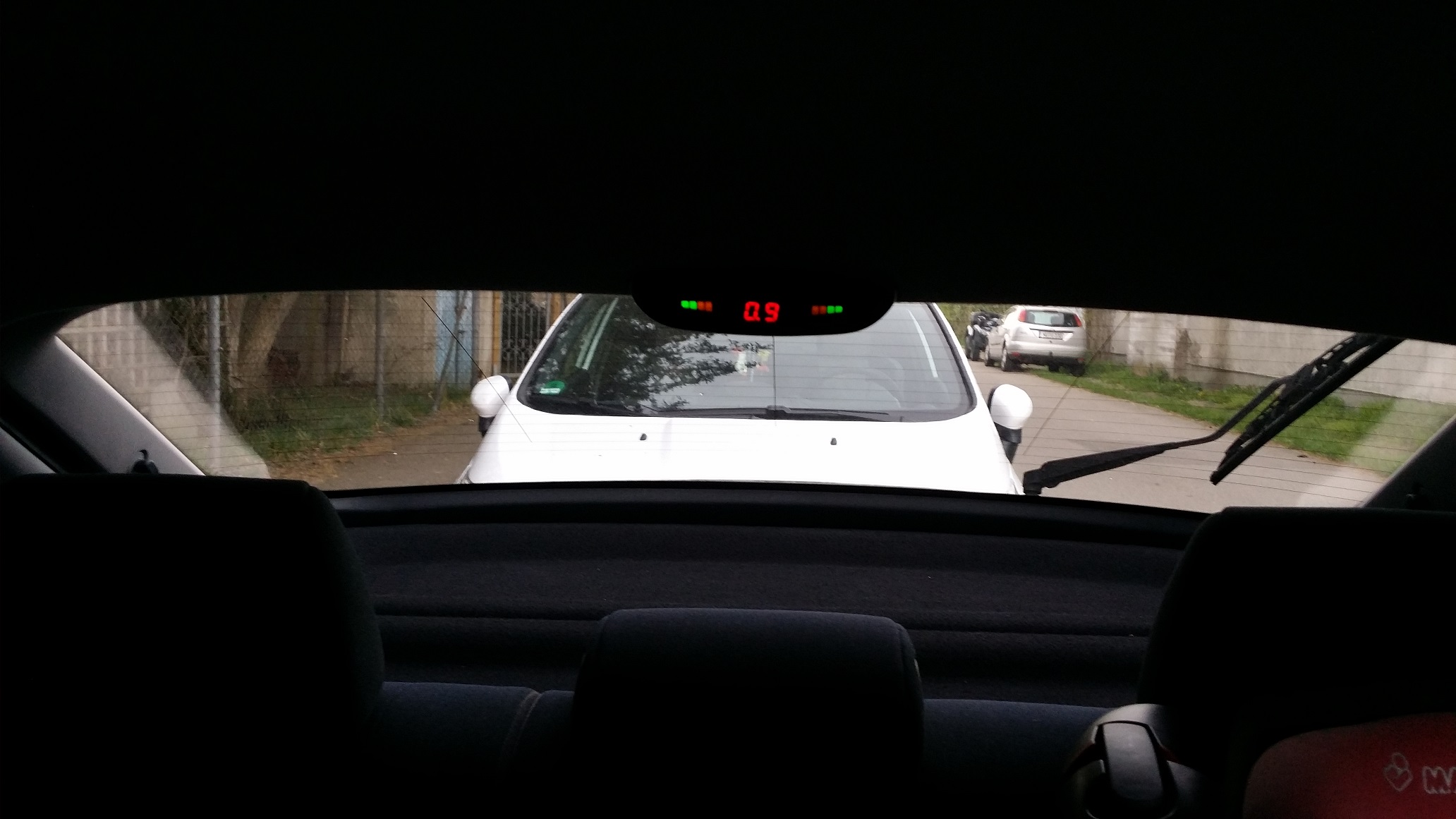 http://allegro.pl/czujniki-parkowania-wyswietlacz-led-pod-podsufitke-i4851186712.htmlTrudno nie było. Od spodu wszystko widać a dziurkę wykorzystałem przy kablach od butli LPG.