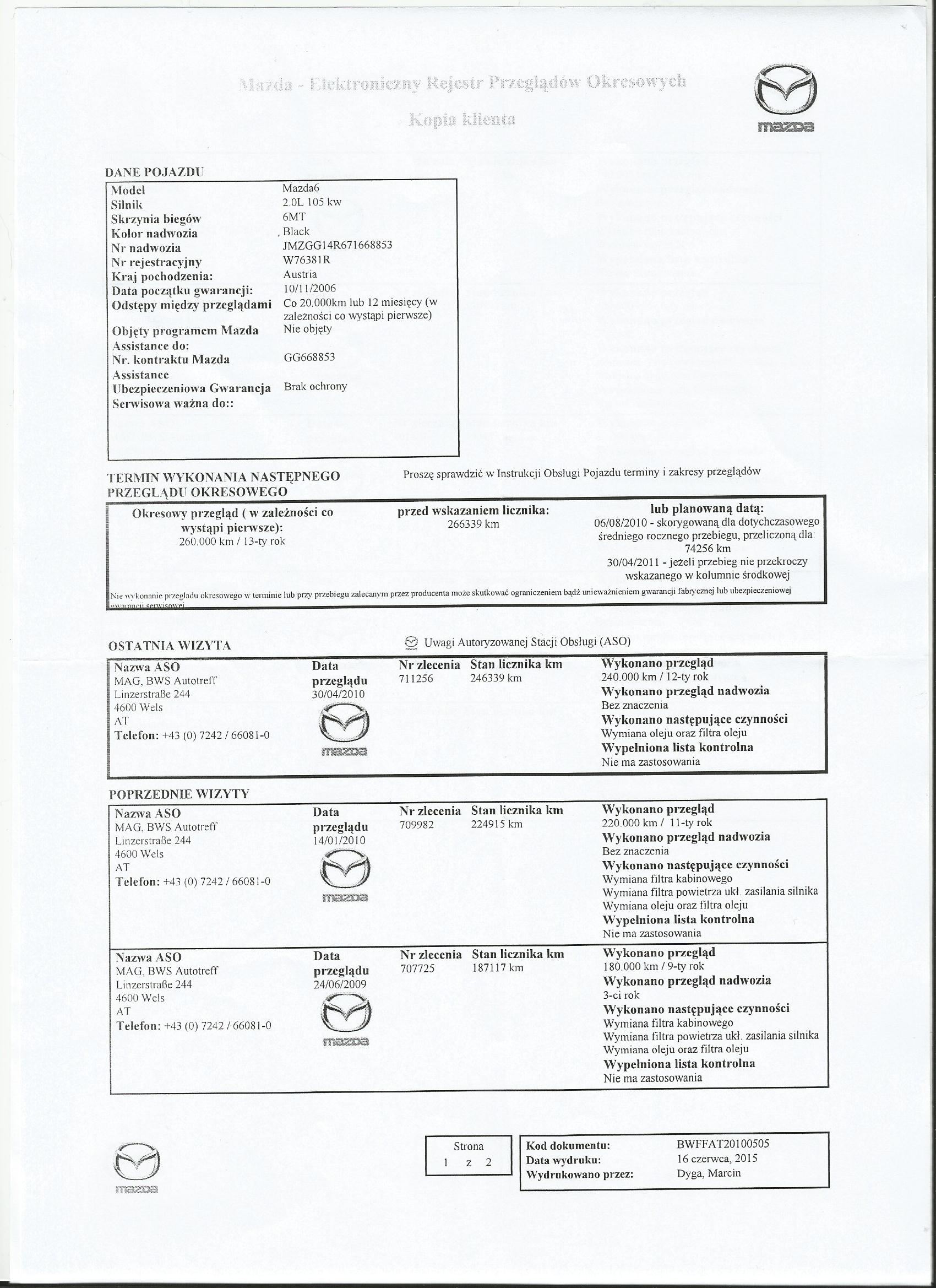 Od jakiegos czasu poszukuje Mazdy 6, jak dotad ogladalem tylko jedna ktora mialem w okolicy. Do innych nie marnowalem nawet swojego czasu po weryfikacji VINu w DSR. Ponizej mazda ktora moze miec spokojnie z 450tys przebiegu skoro z DSR wynika ze w 3,5 roku zrobila 246339km w Austrii. Zamieszczam bo bardzo mnie zrazila ta oferta