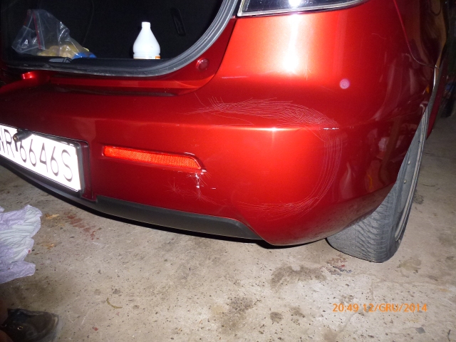 Bartek twierdzi, że jak oglądał to nie widział tego "pająka". Jego brat, który odbierał auto w sobotę – też nie widział. Już wiem, czemu auto nie zostało umyte. Przecieram zderzak i spod brudu ukazuje się cała prawda. Wkurzyłem się nie o to, że mega pająk a o to, że ktoś kto takich auto sprowadził zapewne kilkaset, śmie mi wmówić, że nie widział tego uszkodzenia i kolejny raz to odczucie: zero szacunku dla klienta. Jak już opadły emocje ze zderzakiem, pokazuje Bartkowi krzywo spasowaną klapę bagażnika i lampy. Przesunięcie na tyle spore, że idzie wyczuć je palcami. Różnica w płaszczyźnie pomiędzy lampą z klapy bagażnika a STOP ma jakies 4-5mm uskoku, ogólnie szczeliny różne! Tak sama klapa jak i lampy. Bartek lekceważy to żartując, że Niemiec lakierując klapę, źle złożył, że to się ustawi... -samo?? Czemu mi tego nie powiedział oglądając auto?