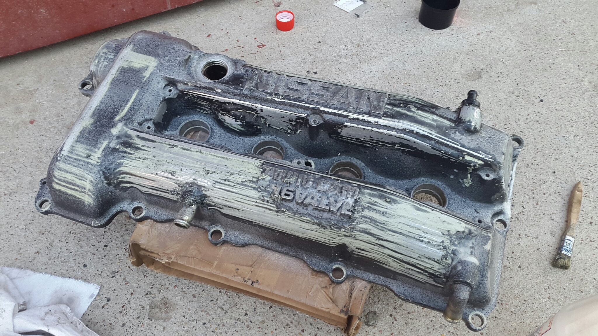 Następnie zacząłem prace nad pokrywą zaworów, kupiłem pokrywę cewek, której mi brakowało i zacząłem zdzierać farbę, efekt pokażę dopiero po skończeniu