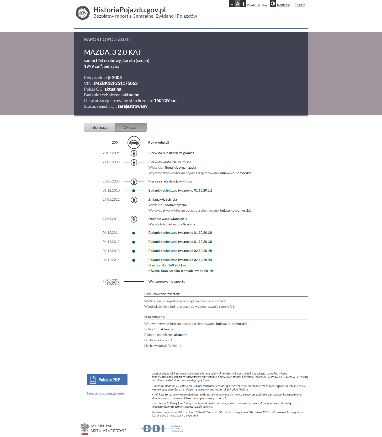 http://otomoto.pl/oferta/mazda-3-2-0-15 ... a7bce0b104W ogłoszeniu właściciel pisze że od 8 lat jest jego pierwszym właścicielem w Polsce. W celu sprawdzenia samochodu wpisałem numer VIN w wyszukiwarkę google. Wyskoczyły mi różne strony w tym jedna zakończona aukcja OTOMOTO z taką oto Mazdą 3:
