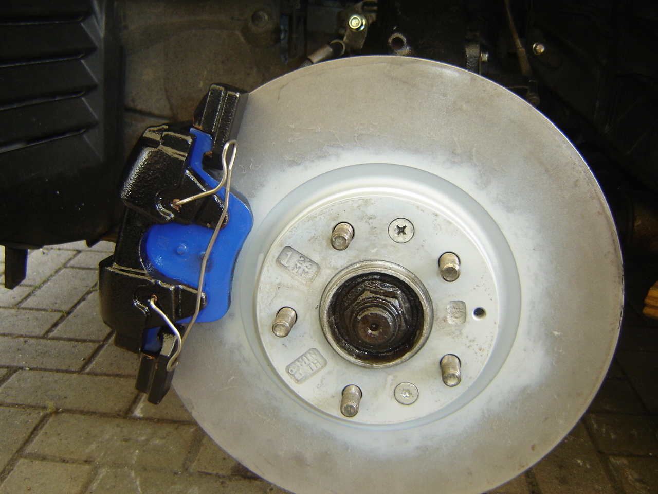 dzieki uprzejmosci innego, solidnego forumowicza (namiar na PW) zakupilem kpl. zestaw przednich hamulcy od M6 MPS no i po ich rozebraniu na drobne, solidnym oczyszczeniu do czystego metalu, odmalowaniu na niepozorny- pasujacy do auta czarny kolor +wymianie manszetek, zamontowalem zestaw na aucie wraz z nowymi klockami.