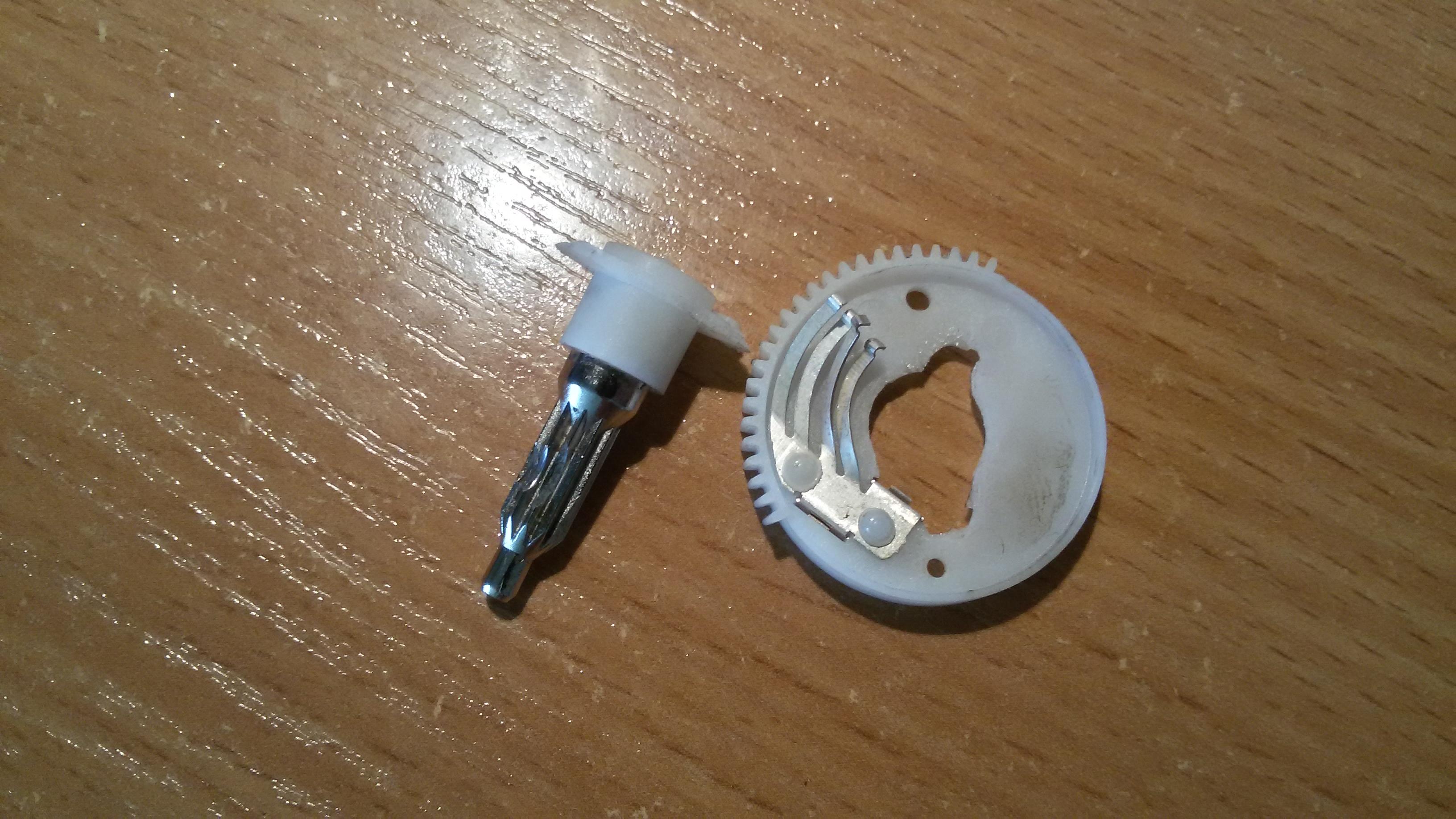Okazało się, że wewnątrz mechanizmu wytarta została metalowa zębatka i tu moje pytanie, co mogło spowodować taką usterkę? Czy możliwe jest, że wnętrze lampy zablokowało się, a silniczek regulacji próbując zmienić położenie spowodował wyszczerbienie ząbków?