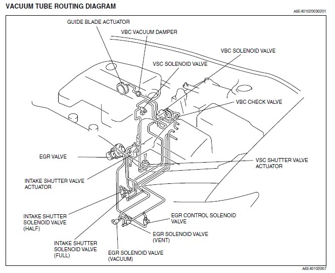 Jeszcze auto jeździ z podłączeniem wężyków podciśnienia z drugiego schematu. Co do tego kto to podłączył i kiedy to nie nie mam bladego pojęcia. Notabene wcześniejszy właściciel już tak miał i kontrolki na desce mu się zapalały. Co do tego który Solenoid – elektrozawór działa to. 15 – EGR SOLENOID VALVE od podania podciśnienia. 16 – EGR SOLENOID VALVE od wentylacji i te obydwa działają na zasadzie procentowego otwarcia. Natomiast 17 – EGR Control solenoid valve – on działa na zasadzie ON – OFF. i w momencie pracy na biegu jałowym jest ON czyli nie przepuszcza powietrza/podciśnienia. Natomiast 16 w momencie pracy czyli podania napięcia sterowanego przepuszcza powietrze między króćcem A i B – czyli tymi koło siebie jak widać na schemacie a w momencie braku napięcia lub stanu 0.00% przepuszcza między króćcami A B C. Kostki są ok tego nie będę ruszał. Pozdro.