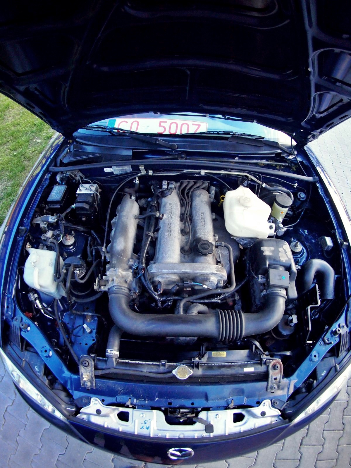 Po 323f BA przyszedł czas na MX5 za namową pewnego jegomościa z królestwa Fordonu. Wybór padł na MX5 NBFL z 2002 roku od Niemca (który jeździł trochę więcej niż tylko w niedzielę do kościoła). Przebieg przy kupnie to 108330 km, wygląda na oryginalny – silnik, skrzynia, napędy – wszystko suche jak pieprz (na zewnątrz tylko, wewnątrz jakieś płyny ustrojowe są), nie dymi, nie bierze oleju, nie szarpie. Samochód w sumie kupiony w ciemno, na telefon, przyjechał na lawecie. Po przyjeździe okazało się że jest trochę więcej do zrobienia z blacharki niż to co było widoczne na zdjęciach.