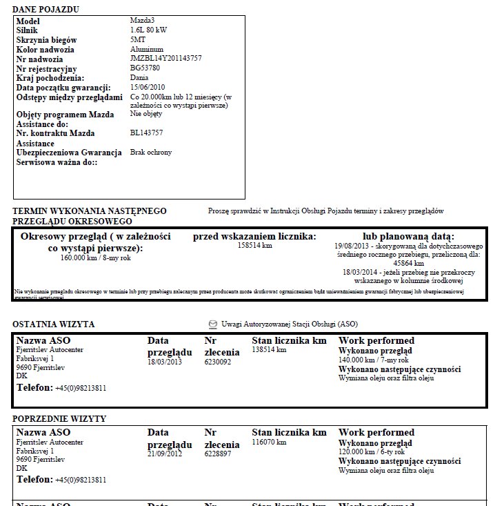 – ta Mazda na badaniu technicznym (w Danii pierwsze jest po 4 latach od pierwszej rejestracji, później co 2 lata) 30-05-2014 roku miała przejechane 193 000km! – czyli ktoś rocznie latał prawie 50 000km, to w sierpniu 2015 roku, jak ją sprowadzali miała nie 156 000km, ale 256 000km!