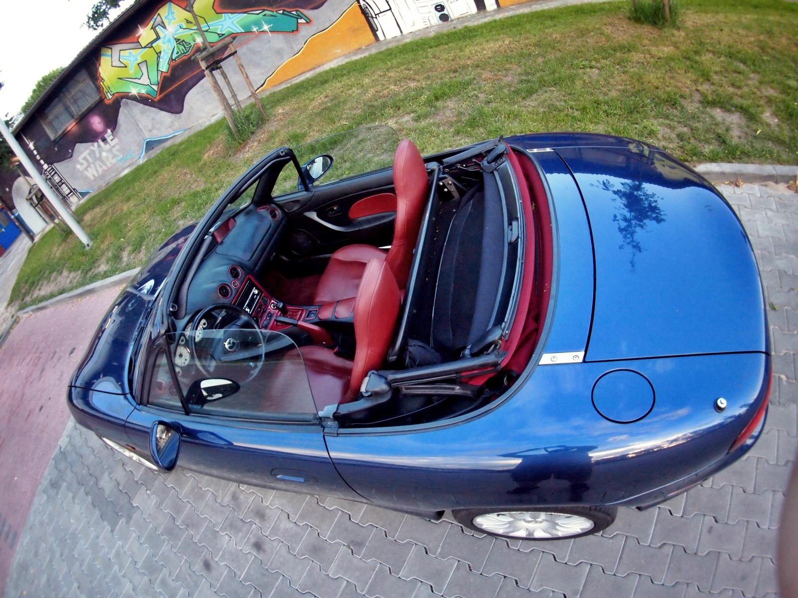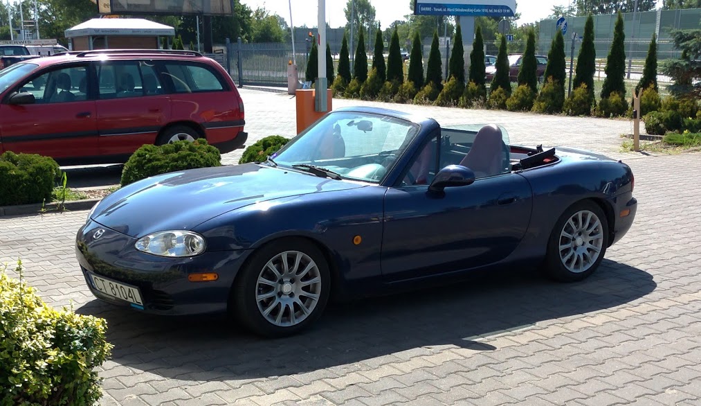 Po 323f BA przyszedł czas na MX5 za namową pewnego jegomościa z królestwa Fordonu. Wybór padł na MX5 NBFL z 2002 roku od Niemca (który jeździł trochę więcej niż tylko w niedzielę do kościoła). Przebieg przy kupnie to 108330 km, wygląda na oryginalny – silnik, skrzynia, napędy – wszystko suche jak pieprz (na zewnątrz tylko, wewnątrz jakieś płyny ustrojowe są), nie dymi, nie bierze oleju, nie szarpie. Samochód w sumie kupiony w ciemno, na telefon, przyjechał na lawecie. Po przyjeździe okazało się że jest trochę więcej do zrobienia z blacharki niż to co było widoczne na zdjęciach.