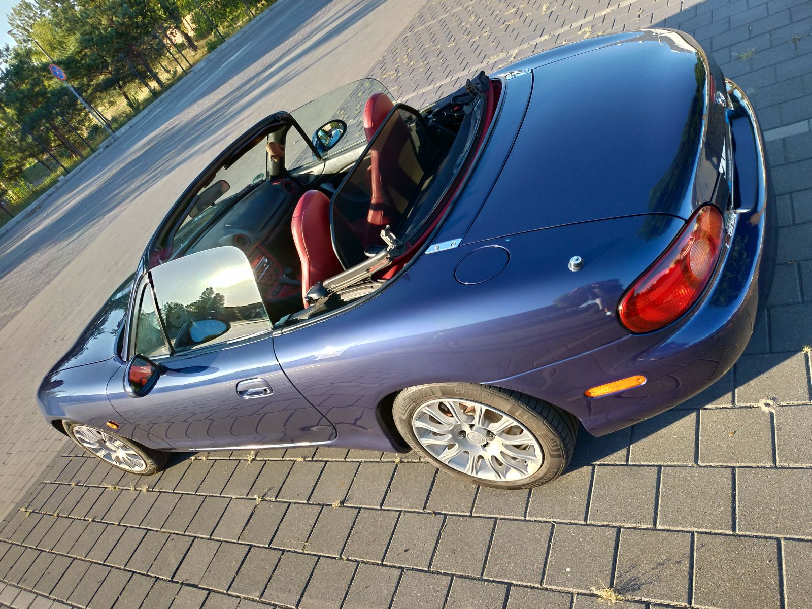 Samochód wypatrzony ze względu na bardzo ciekawe połączenie kolorystyczne i tylko dlatego zakupiony. Lakier to 22A Supreme blue mica a do tego jest czarne wnętrze z czerwonymi wstawkami (fotele skórzane, podłokietnik, obramowania nawiewów, wstawki na konsoli centralnej) i czerwony dach. Nie znalazłem informacji czy były takie wersje, czy to jakaś specjalne, więc raczej jest to zamówienie indywidualne jakiegoś Niemca. Całość jest bardzo spójna i wygląda świetnie.