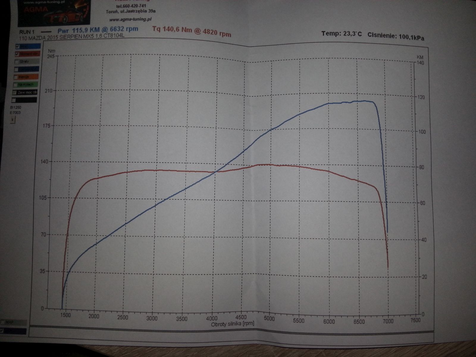 Silnik standardowy – 1.6, wymieniona wkładka filtra powietrza na K&N.
