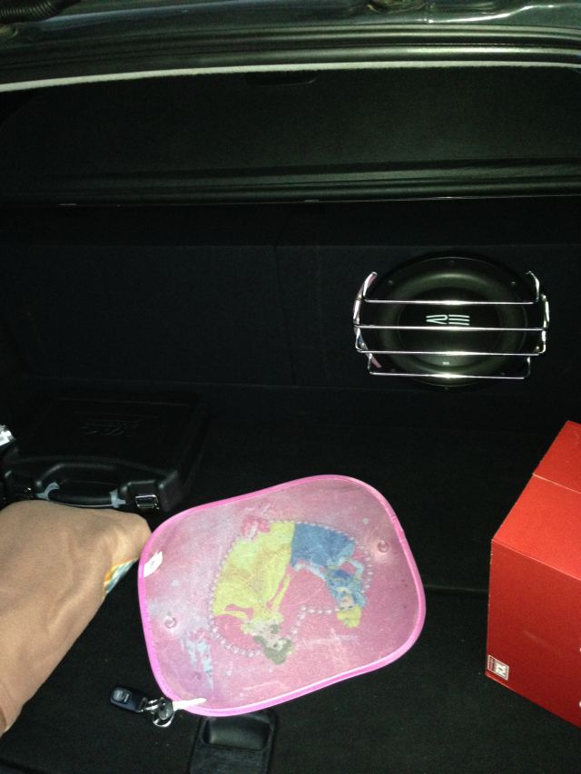 Założenie mojej instalacji było takie aby to grało a zarazem nie rzucało się w oczy, więc głośnik nie został wyciągnięty przed tapicerkę-zawsze to można zrobić, nawet spokojnie w zimie w piwnicy. Posłucham trochę jeśli tapicerka będzie wydawać nie przyjemne dźwięki to się wezmę za to, a na razie będzie tak.