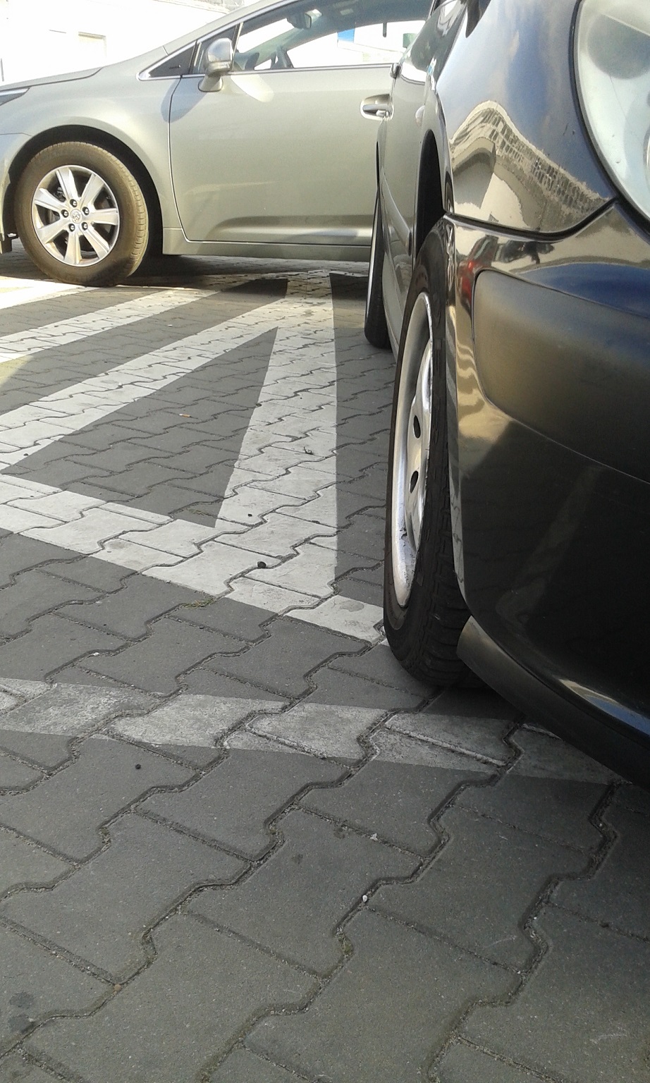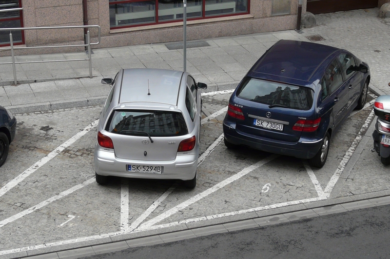 Parking jest pod biurowcem, osoby z dwóch różnych firm. Nie ma tabliczki wyznaczającej "strefę ruchu", miejsce z kopertą nie ma oznaczenia firmy, nr rejestracyjnego, nie ma tabliczki przy miejscu do kogo ono należy. Osoba z Toyoty blokuje specjalnie Puga, bo ten częściowo zajmuje miejsce z kopertą, na którym osoba z Toyoty zazwyczaj parkuje. Obok dwa inne miejsca na których można było zaparkować Avensisa, na tym miejscu też dało radę zaparkować. Ogólnie samo miejsce gdzie stoi 307 jest dość kiepsko wyznaczone, bo faktycznie zachodzi na miejsce z kopertą. Z tego co widziałem właścicielka 307 robiła zdjęcia, a po jakimś czasie właścicielka Toyoty przestawiła ją na wolne miejsce. Pytanie – gdyby nie chciała przestawić, to co z tym zrobić?