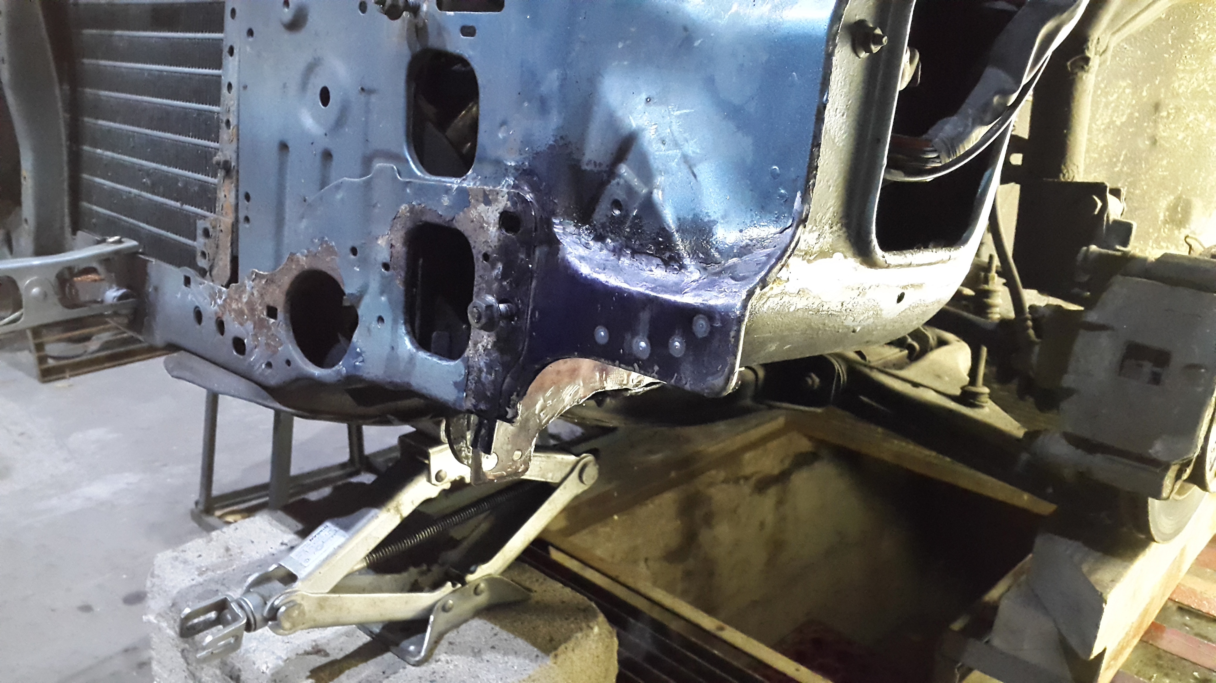 Powoli do przodu coś się dzieje. Tył i podłoga już zakonserwowane, podłużnice z tyłu i pod podłogą, oraz progi zabezpieczone wewnątrz. a teraz czas na ogarnięcie przodu. Niby była tylko mała dziurka, a jednak okazało się jak zwykle