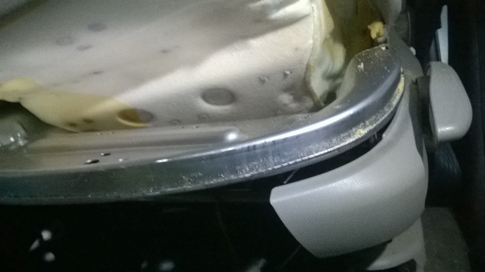 1. Montaż przełączników jest banalnie prosta. wyciągamy (4 śrubki) konsolę środkową (to gdzie mamy podstawkę pod kubki) i wycinamy nożykiem otwory pod przełączniki. Jak widzicie – nacięcia są już przygotowane więc łatwo to idzie. Kostki podłączeniowe są przygotowane – tylko wpiąć. Teraz mamy już napięcie pod fotelami.