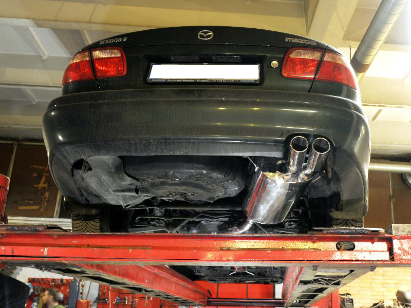 Troszkę czasu minęło co nie znaczy, że Xedos został zapomniany i stoi w jakimś garażu nie ruszany. Otóż samochód okazał się bardzo wdzięczny. Całkowicie bezproblemowo pokonuje kolejne kilometry więc nie widziałem większego sensu aby się tym dzielić, chociaż to może błąd z mojej strony. NIestety-stety jakiś czas temu zaczął jakoś groźnie pomrukiwać i stało się to co w sumie wcześniej czy później powinno się stać. Wydech, a szczególnie ostatni tłumik dokonał swojego żywota i konieczna stała się ingerencja specjalisty. Z zamiarem wymiany nosiłem się niemalże od początku użytkowania samochodu to wczoraj odebrałem Xeda z warsztatu specjalizującego się w wydechach. W załącznikach kilka zdjęć pokazujących efekt pracy mechaników. Niestety pogoda nie rozpieszcza i samochód po kilku kilometrowej wycieczce wygląda jak wygląda, ale jak tylko nieco przejaśni się wrzucę kilka zdjęć kiedy samochód lepiej się prezentuje.