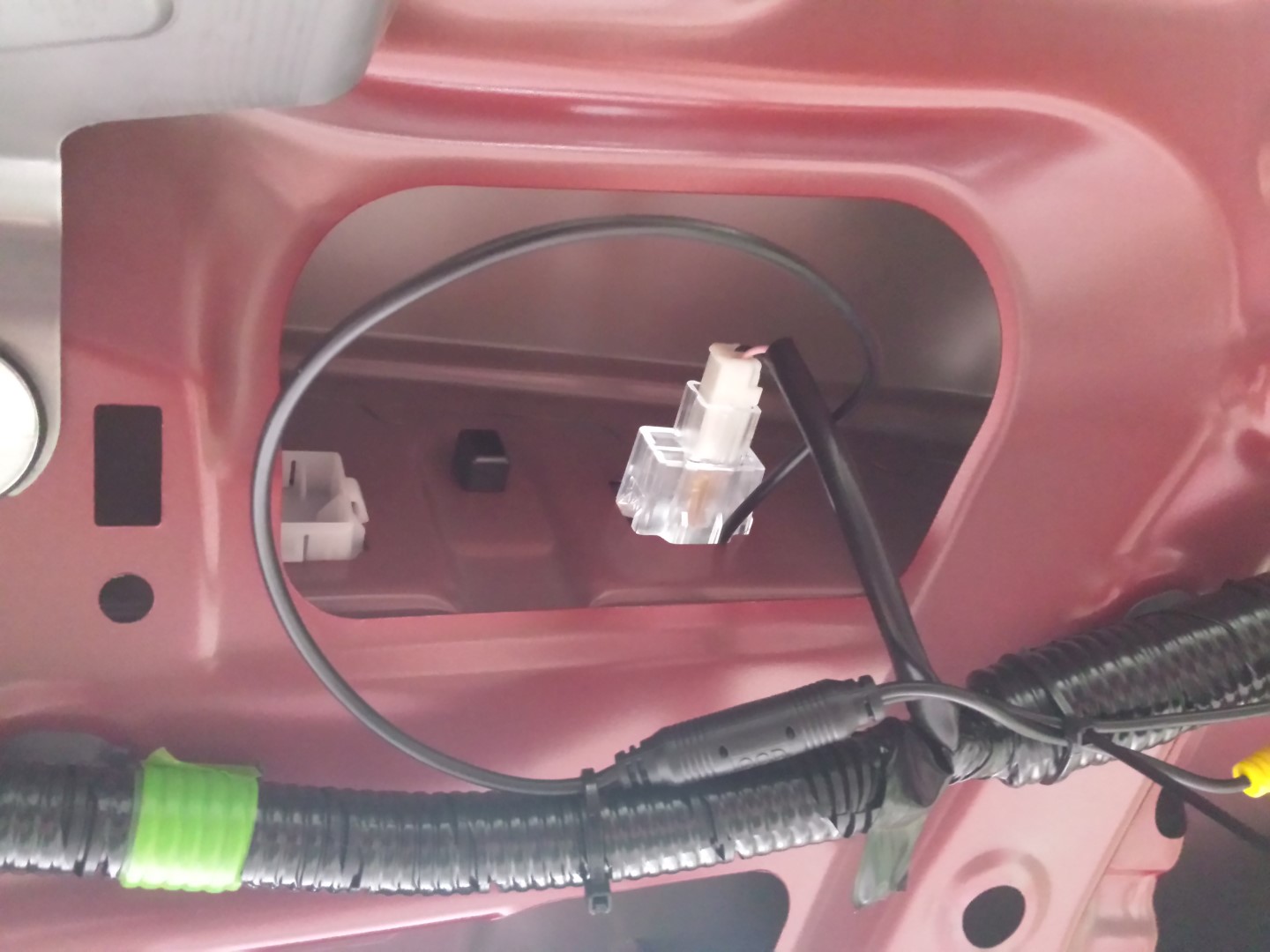 Złączki zaizolowałem taśmą, żeby się przypadkowo nie stykały z karoserią i nie rozłączyły.