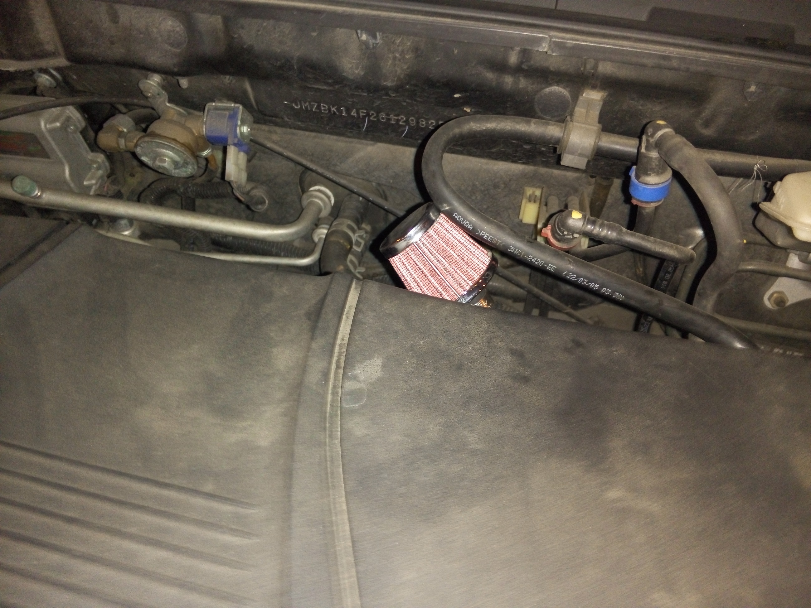 Przy okazji, w sumie testowo podpiąłem filterek odmy, ponieważ akurat był pod ręką (kupiony z myślą auta od brata, kupiony zły rozmiar), a jako że niedawno czyściłem przepustnicę, to po co ją znów brudzić ;P Ponoć w kabinie może być czuć zapach spalonego oleju, jeśli tak będzie przywrócę oryginalną odmę i może poproszę św. Mikołaja o oil catch tank ;)