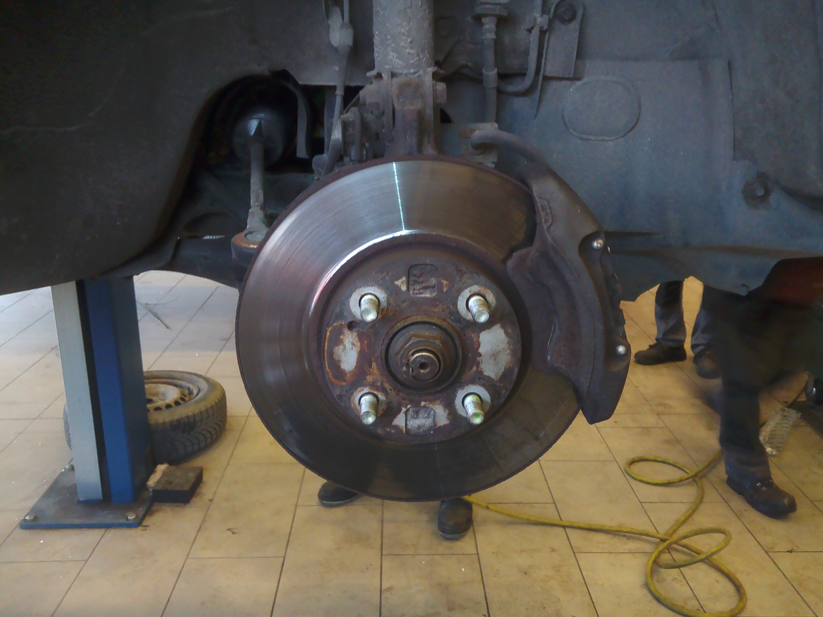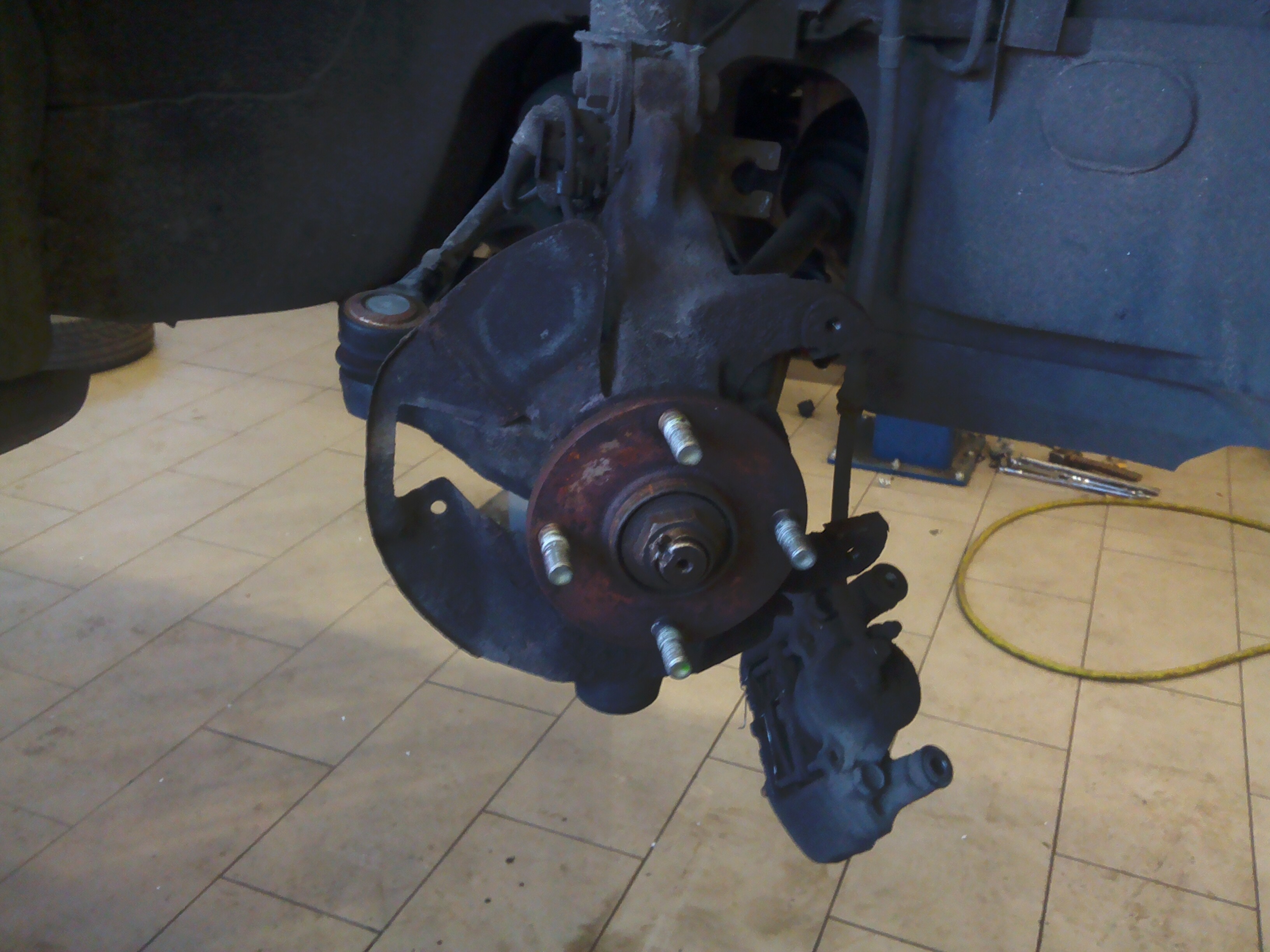 Zaciski Mazda 6 GG po pełnej regeneracji, Tarcze ATE 283 mm, przewiercone na 4x100, klocki ATE, zwrotnice wraz z osłonami z 323F BA GT V6 i aluminiowe pierścienie centrujące. Do tego nowe łożyska NSK+uszczelniacze.
