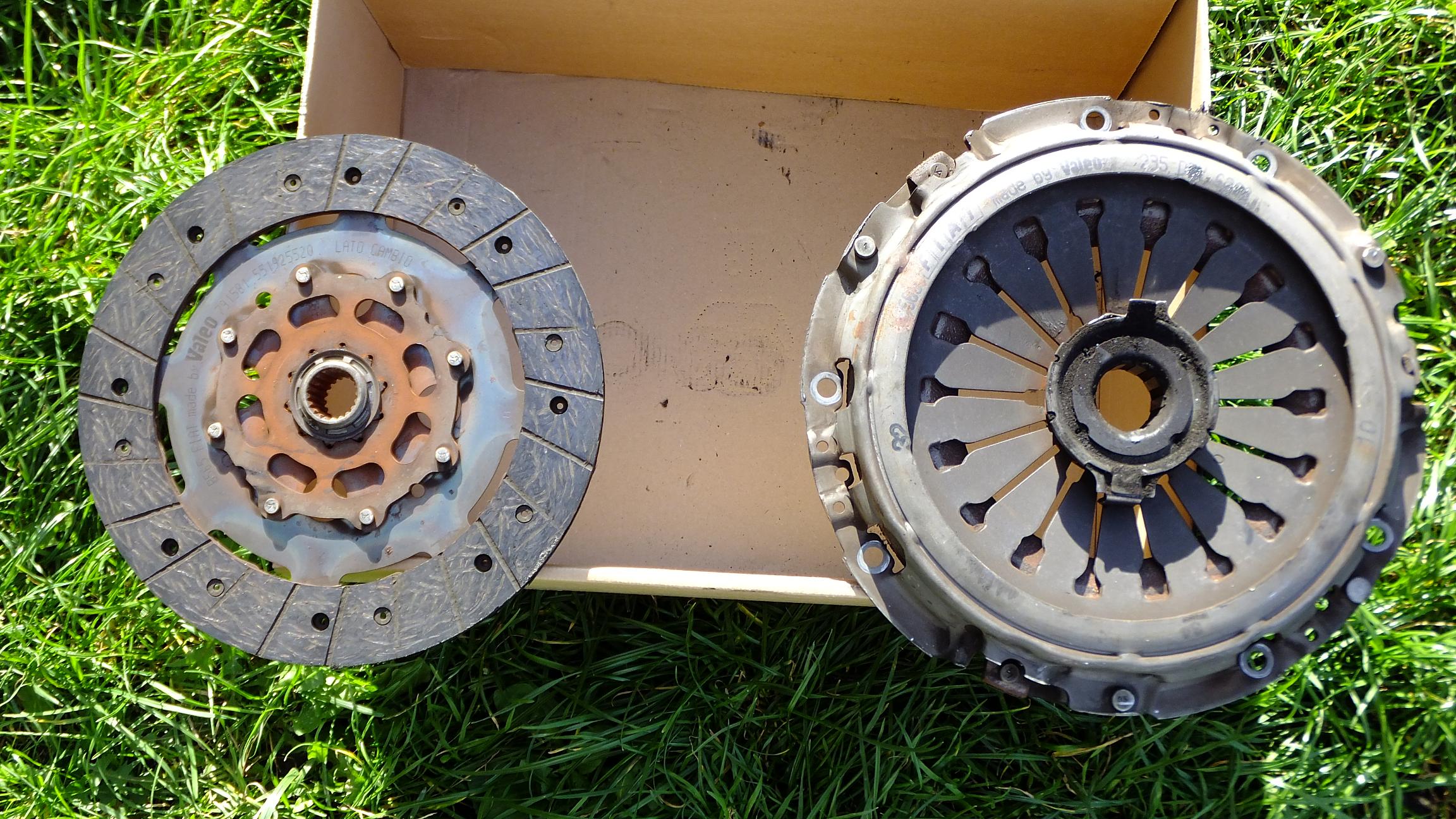 Alfa pod koniec września złapała focha :D Najpierw był delikatny tzw. "stuk" a później biegi stanęły w miejscu :| pierwsze co przyszło na myśl to koniec sprzęgła (opornie chodziło) i faktycznie myśl się potwierdziła. Wpadło nowe OEM Valeo (czyli takie samo co było) <jupi> Teraz w ogóle nie czuć, że wciskam pedał sprzęgła (trzeba je rozdziewiczyć) hahaha