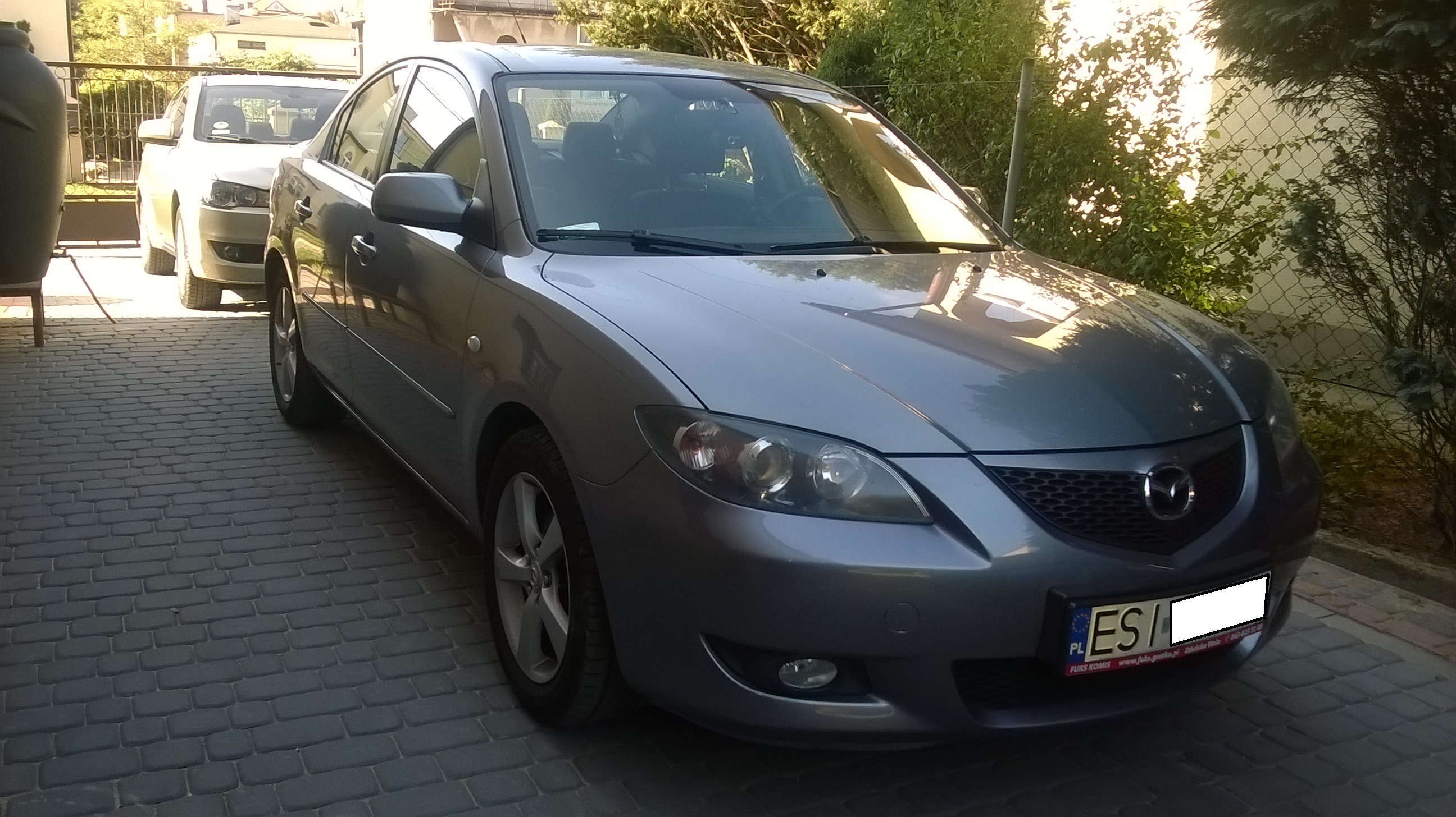 Jak już wspomniałem we wrześniu zakupiłem swoją Mazdę od osoby prywatnej. Umówiłem się z właścicielką na oględziny i kiedy zajechałem na miejsce ujrzałem coś pięknego. Był to jedyny cud świata, gdyż pozostałych 7 nie uznaję po tym co zobaczyłem. Chwili tej towarzyszył jasno świecący promień światła padający na rzeczony cud w akompaniamencie niebiańskiego chórku. Pod stopami czułem lekkość, w brzuchu przyjemne mrowienie, a w świadomości… cóż, przy takim zjawisku nie ma mowy o świadomości, o czym może świadczyć chociażby fakt, że nie wpadłem na pomysł uchwycenia tego na zdjęciu. Mówię tu o stojących jedna za drugą dwóch pięknych mazdach, pięknym niebieskim hatchbacku i tej drugiej piękniejszej (mojej :D <serduszka> ) , którą opiszę i przedstawię poniżej. Był to pierwszy i jedyny egzemplarz jaki oglądałem i z racji stanu samochodu nie było możliwości, żebym wrócił do domu bez tej ślicznotki. Oglądając swój cel kilkudziesięciokilometrowej podróży nie mogłem się powstrzymać od spoglądania co chwilę na tą drugą. Na szczęście miała ona innego właściciela i nie była na sprzedaż, więc nie byłem rozdarty (bo właśnie niebieski hatchback był drugi w kolejności szukania).