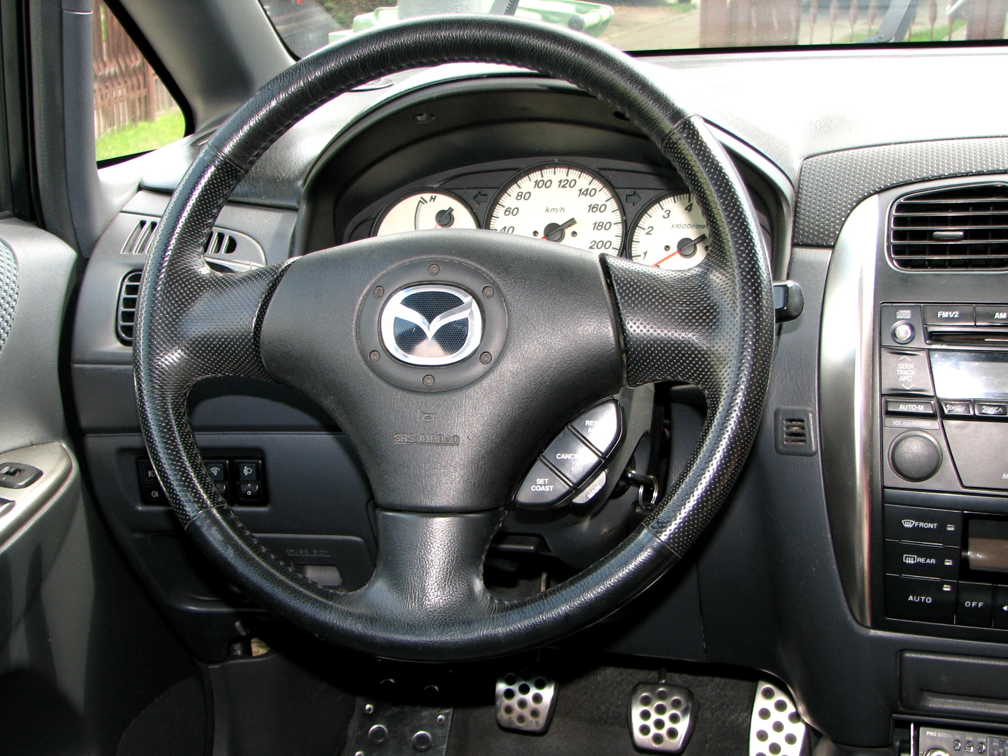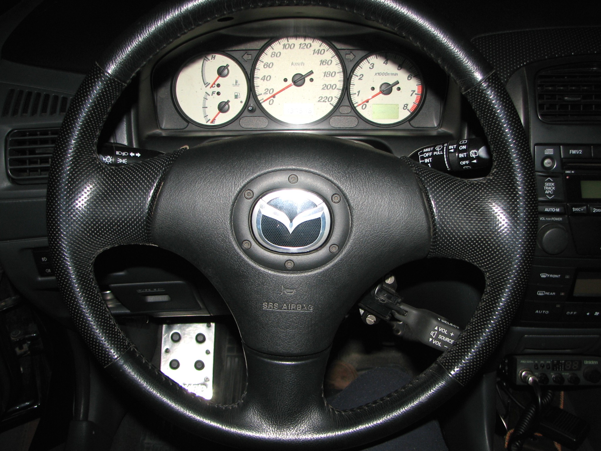 Kierownica 3 ramienna faktycznie o wiele lepiej wygląda, ale przecież wychodziły kierownice do 323F i Premacy z takim małym pilotem od radia. Nie lepiej było taką upolować? Albo sam pilot?