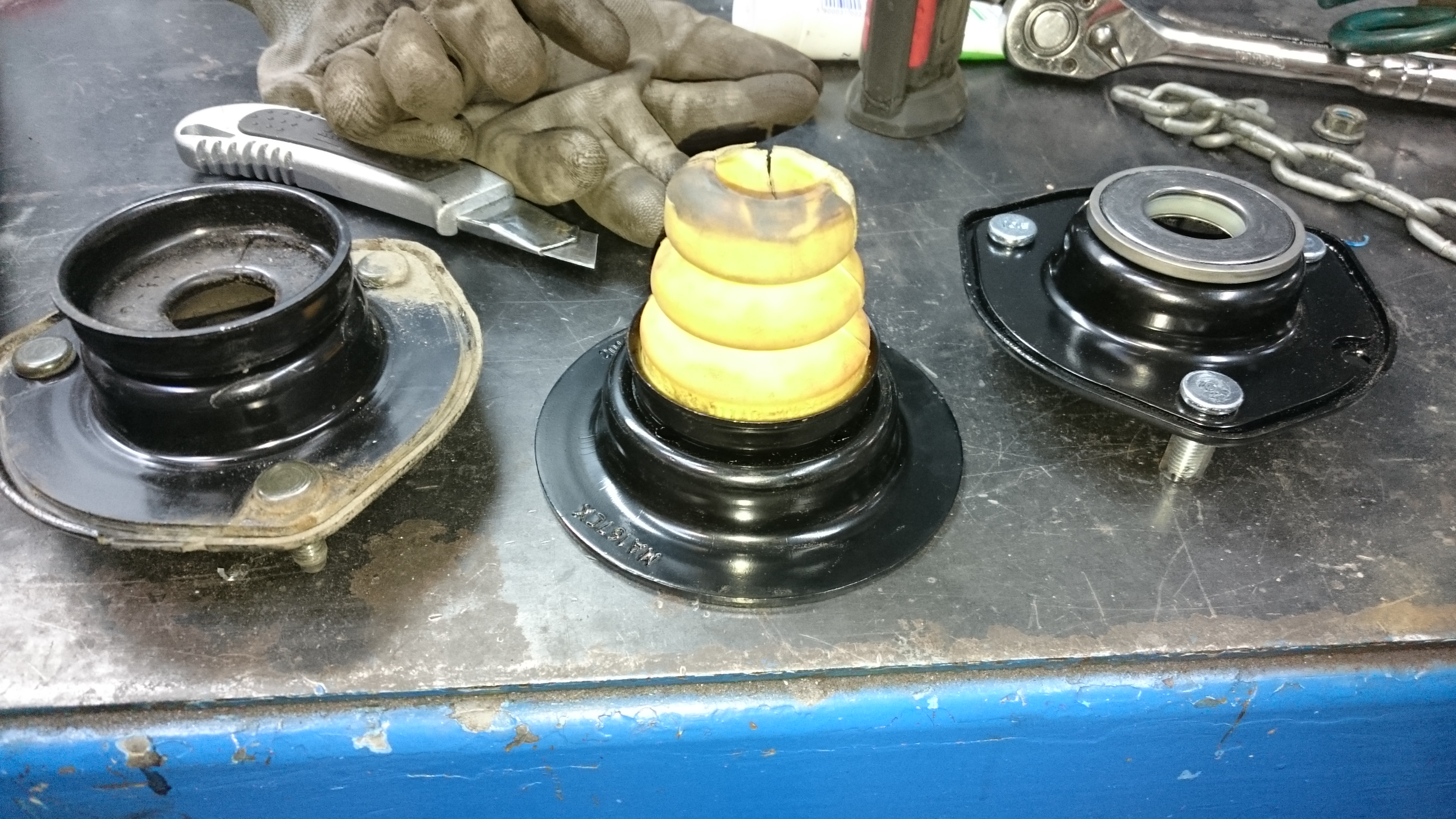 Nie udało się wymienić poduszek amortyzatora bo niestety kupiłem poduszki do mazdy 6 po 2004 i tam już jest inna konstrukcja jej, co widać na zdjęciach.