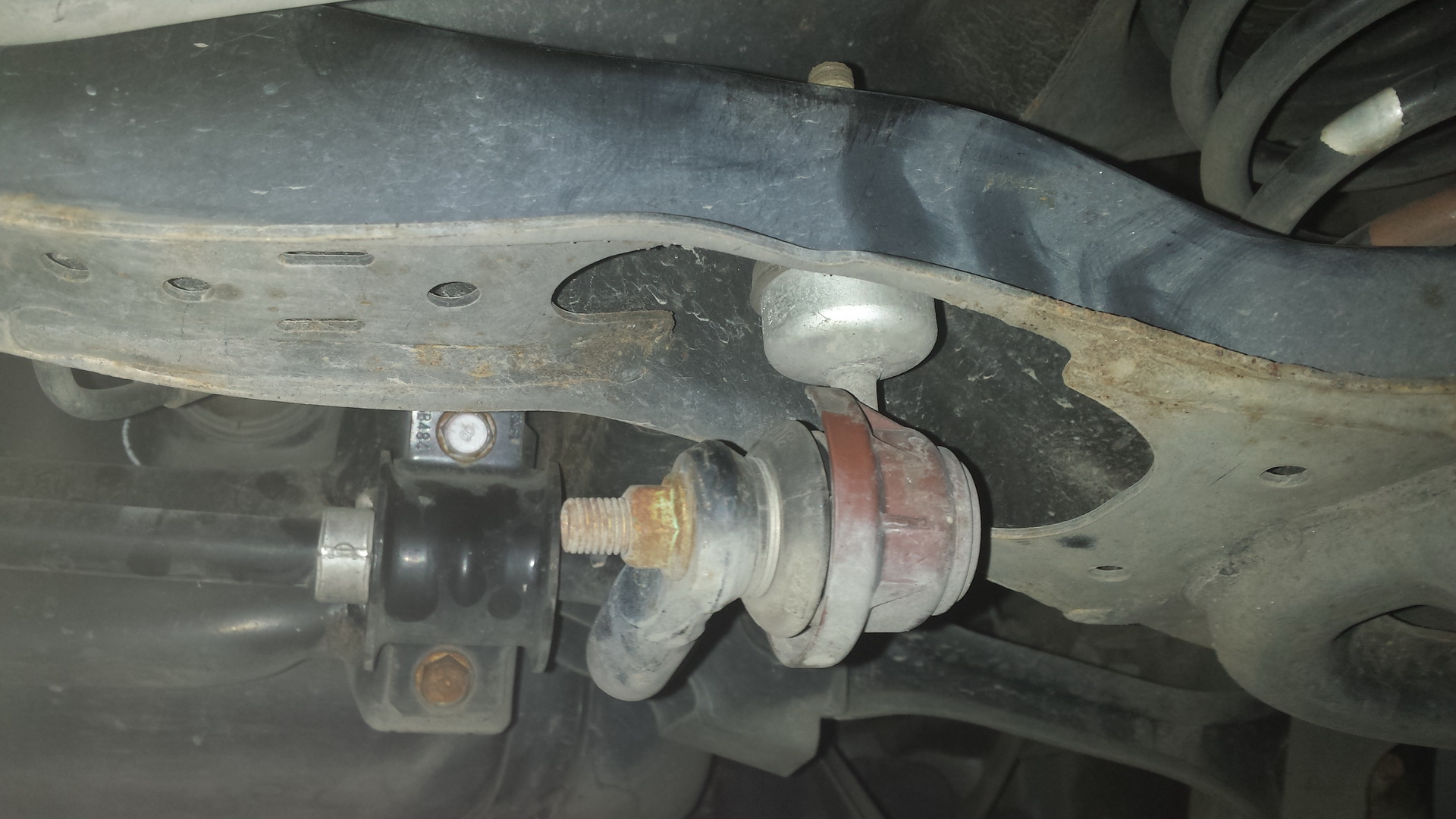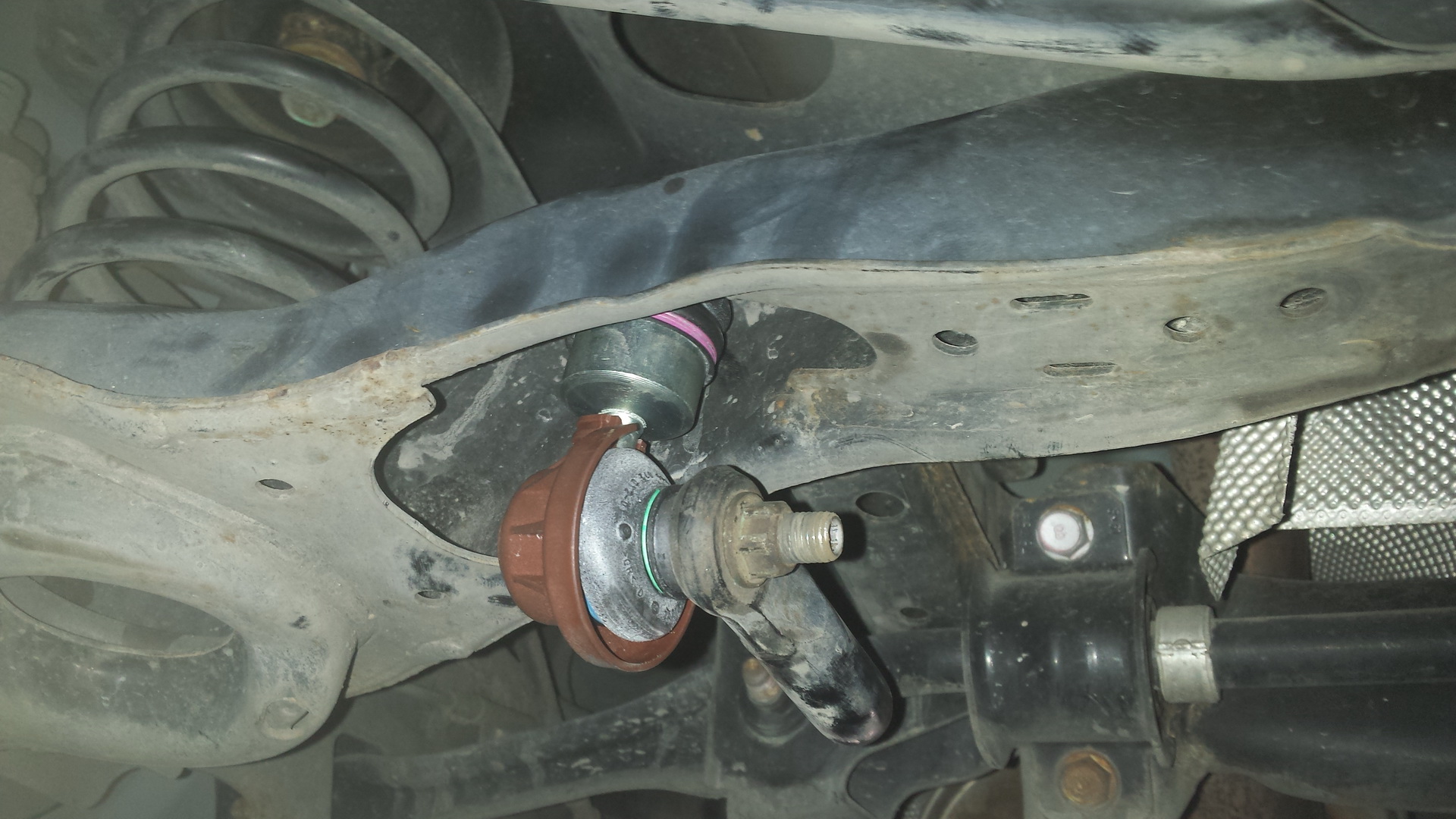 Poprosiłem ASO o możliwość samodzielnych oględzin przed naprawą, jak auto jest w powietrzu i faktycznie drobny luz był. Przy okazji obejrzałem podwozie – jest zdrowo, a konserwacji żadnej nie robiłem. <spoko>