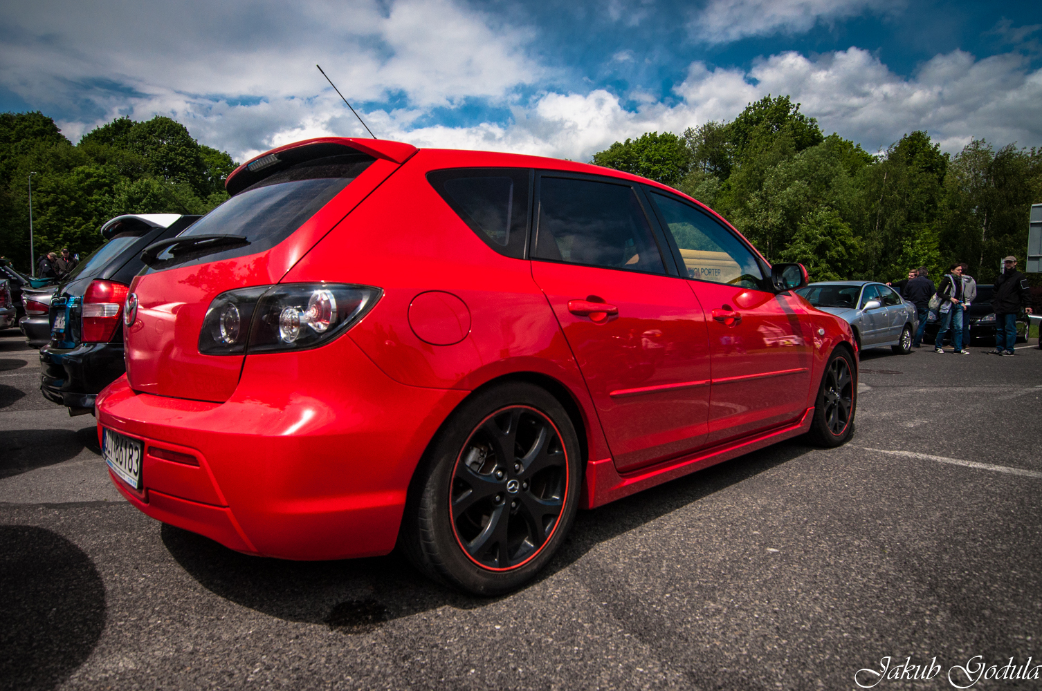 Świetna sztuka z ten Mazdy :) Kolor piekny. Czerwony rant na felgach robi robotę :D powodzonka w modach i przyjemności z jazdy
