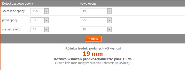 Czyli przy 100 na liczniku będziesz jechał około 86km to chyba nie jest ok, sam licznik przełamuje 6-7% plus zmiana opony
