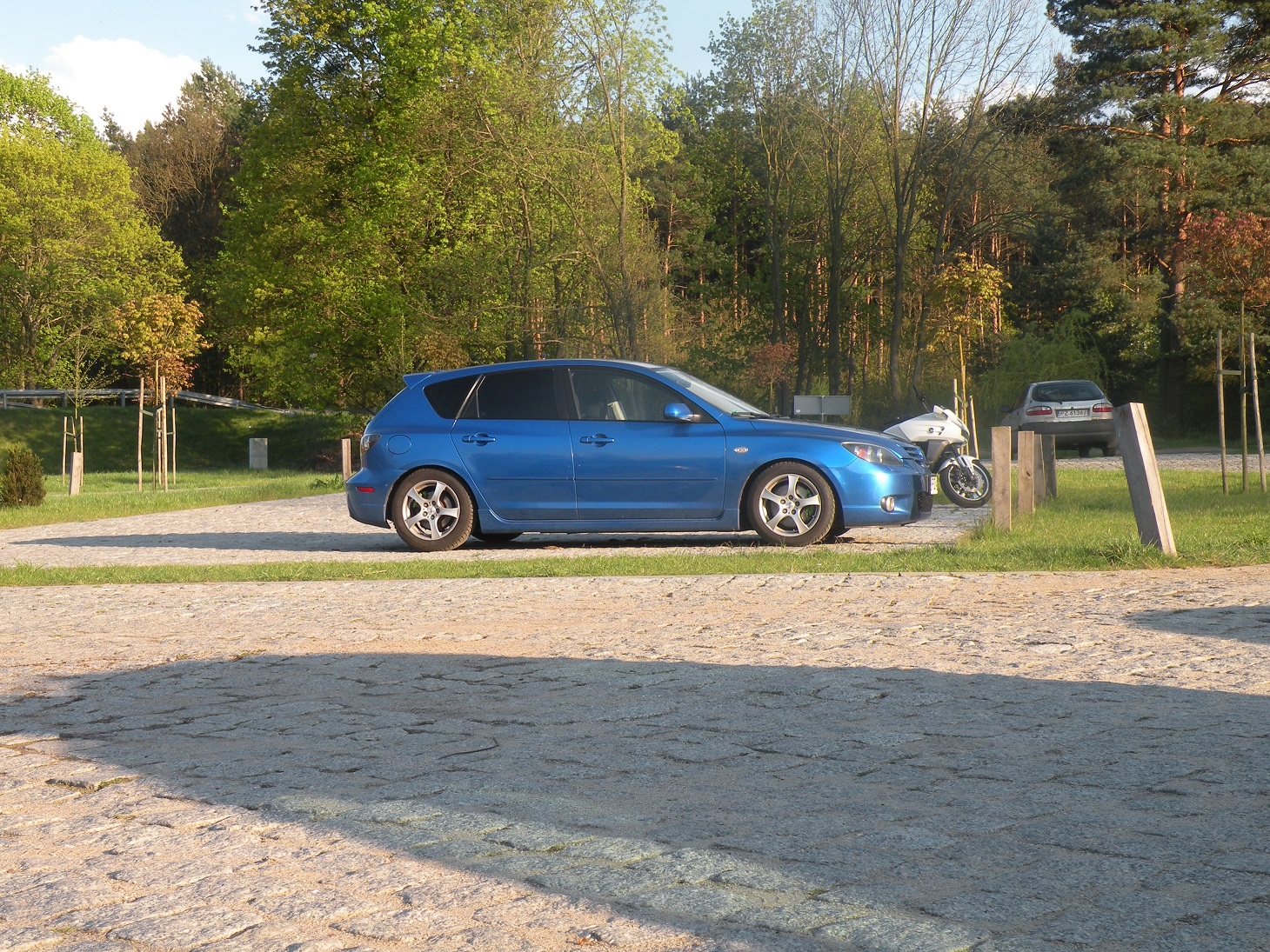 Gdy byłem świeżo po zdaniu prawka od razu chciałem mieć swoje 4 kółka. Na początku jeździłem Fiatem Punto 1.1 mojego ojca. Jednak przyszedł taki czas, że 55KM mi nie starczało <glupek2> . Po odłożeniu odpowiedniej ilości pieniędzy zacząłem się rozglądać za własnym samochodem. Przejrzałem wiele ofert patrzyłem na Seaty Leony , Ibizy , Ople . Po pewnym czasie natknąłem się na ogłoszenie pewnej niebieskiej Mazdy <faja> . Od razu wiedziałem że to „ona” <serduszka> więc postanowiłem się umówić na spotkanie i przyjrzeć jej się z bliska.Gdy dojechałem na miejsce od razu się zakochałem i stwierdziłem, że muszę ją mieć! :) Gdy przyjrzałem się jej dokładniej zauważyłem, że w 2-3 miejscach na klapie lakier ,,uciekł” oraz spostrzegłem kilka małych ,,wgniotek” na drzwiach , mimo to postanowiłem się nią zaopiekować i tak stałem się jej posiadaczem :). Auto zostało sprowadzone z Niemiec, jestem jej 1-szym właścicielem w Polsce :) Niestety dokładna historia nie jest mi znana , wiem że jeździł nią polak co mam na papierach ; ) przód pod maską itp. był oglądany i nie wygląda żeby była jakaś kolizja , tył i boki tak samo ;).