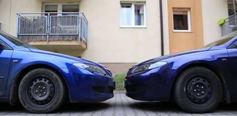 Dopiero na tych zdjęciach widać jaka jest różnica w odcieniach lakieru w obu Mazda.