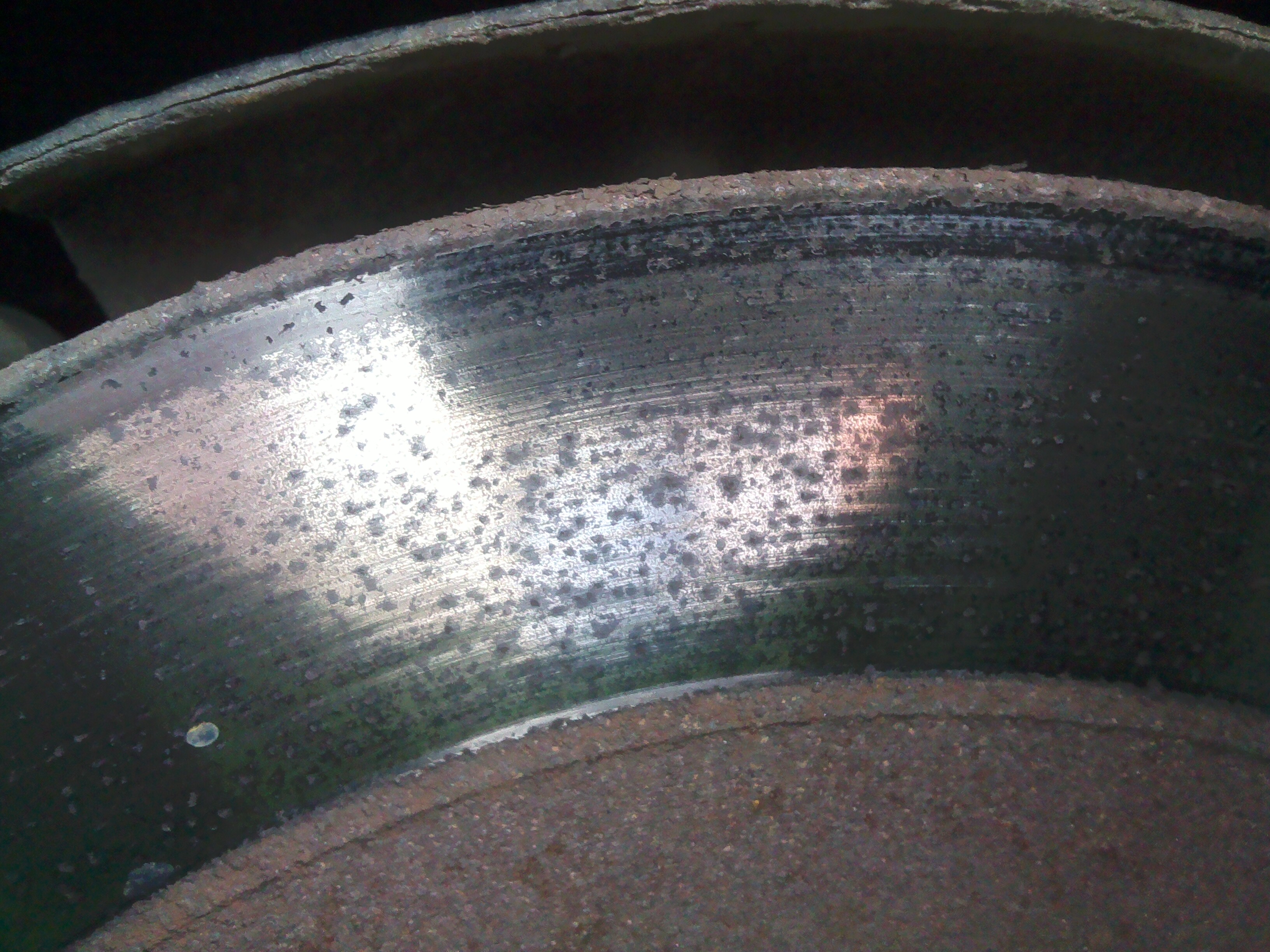 Na przednich widac delikatny rancik ale nie ma tragedii, trzeba zmierzyc grubosc i porownac z gruboscia dopuszczalna/minimalna dla tych tarcz to bedziesz wiedzial w jakim są stanie. Tylne to chyba dlugo nieuzywane byly (moze zacisk stoi?) bo sie wzery porobiły i rancik wiekszy ale tez by trzeba grubosc zmierzyc najlepiej