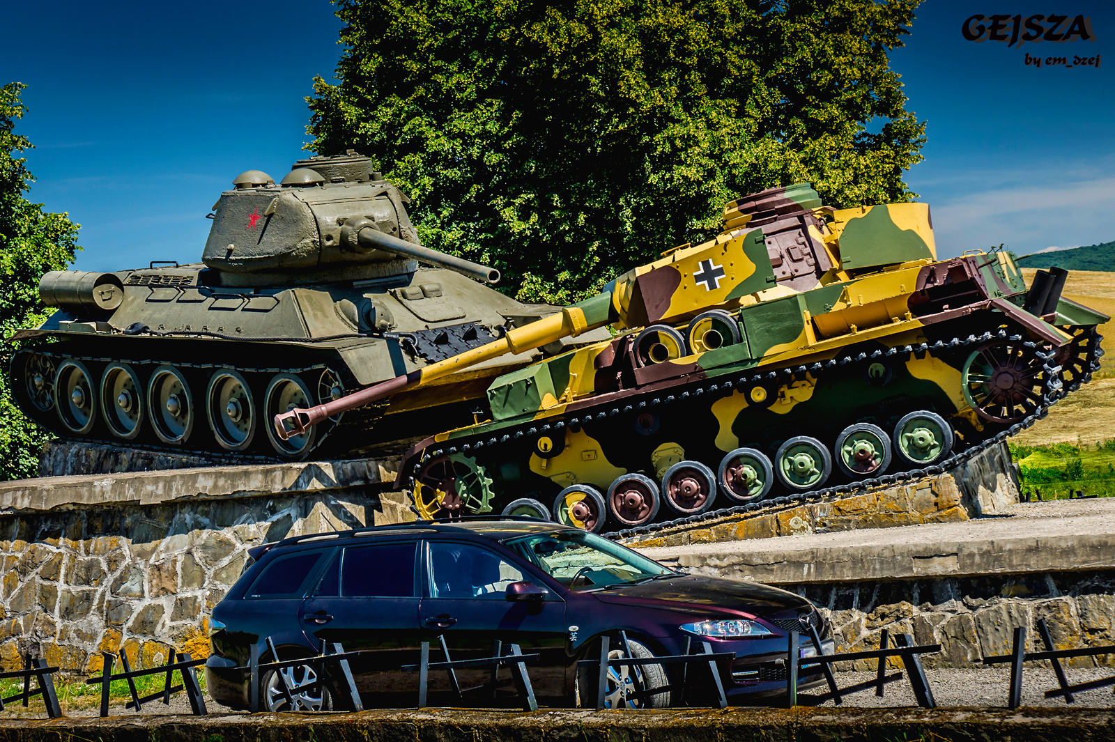 NA zdjeciach widać pomnik w Dolinie Śmierci ,ruski T34 miażdzy niemiecki PzKpfw IV.