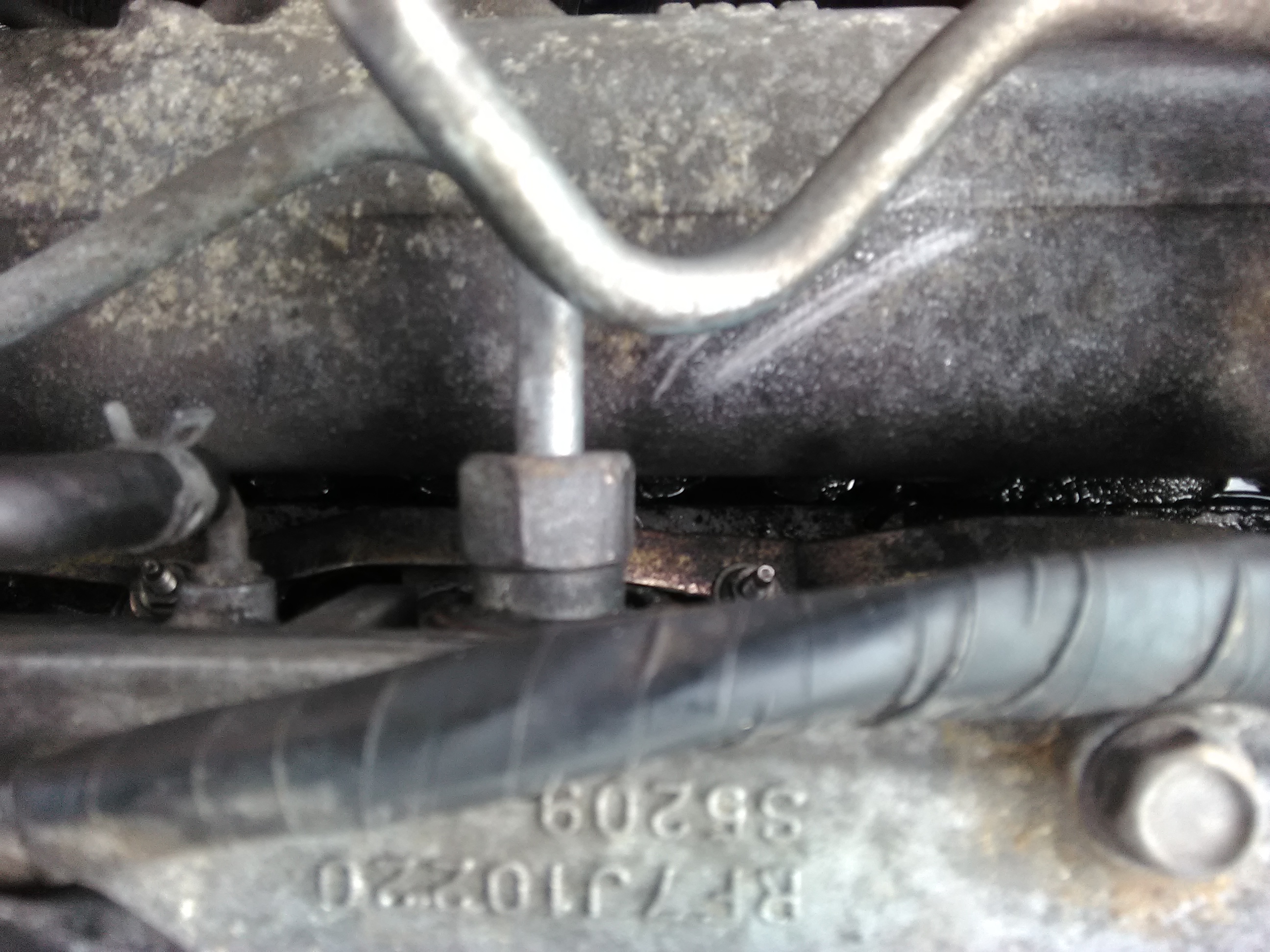 Jedyne czego mógłbym się czepić to olej lub paliwo (ciężko dokładnie określić co to) ciągle zbierające się na łączeniu kolektora ssącego z głowicą. Nie potrafię znaleźć źródła tej substancji. Przewody paliwowe w porządku, uszczelka pod pokrywą zaworów również. Z łaczenia kolektora ssącego chyba nie dawało by żadną cieczą??? Pęknięta głowica?? Nad kolektorem ssącym w sumie jej nie ma tylko ta druga część pokrywy. Dorzucam zdjęcie choć trudno je dobrze wykonać