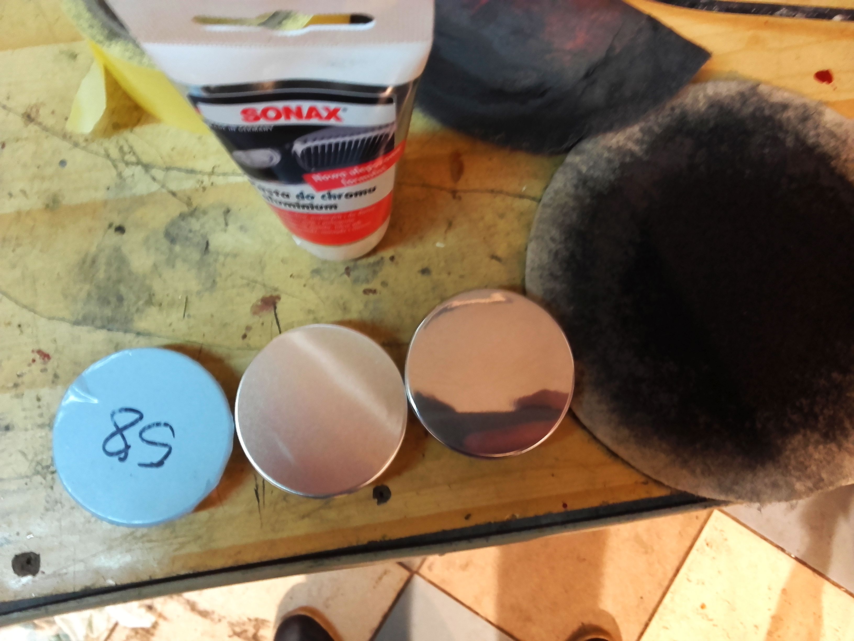 W między czasie dokupione dekielki. Ostatecznie wybór padł na najzwyklejsze, aluminiowe, gładkie... które również trzeba było trochę przepolerować