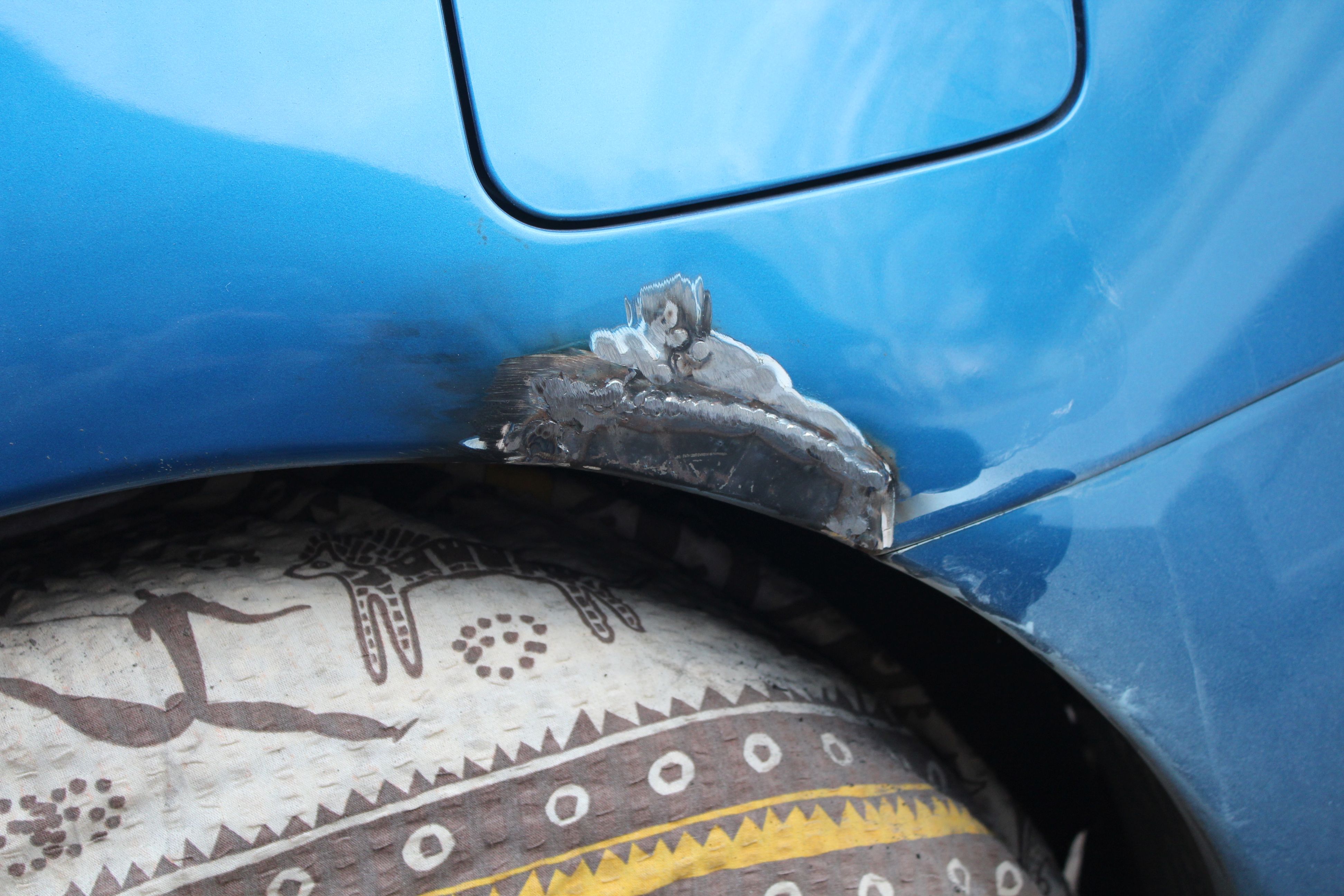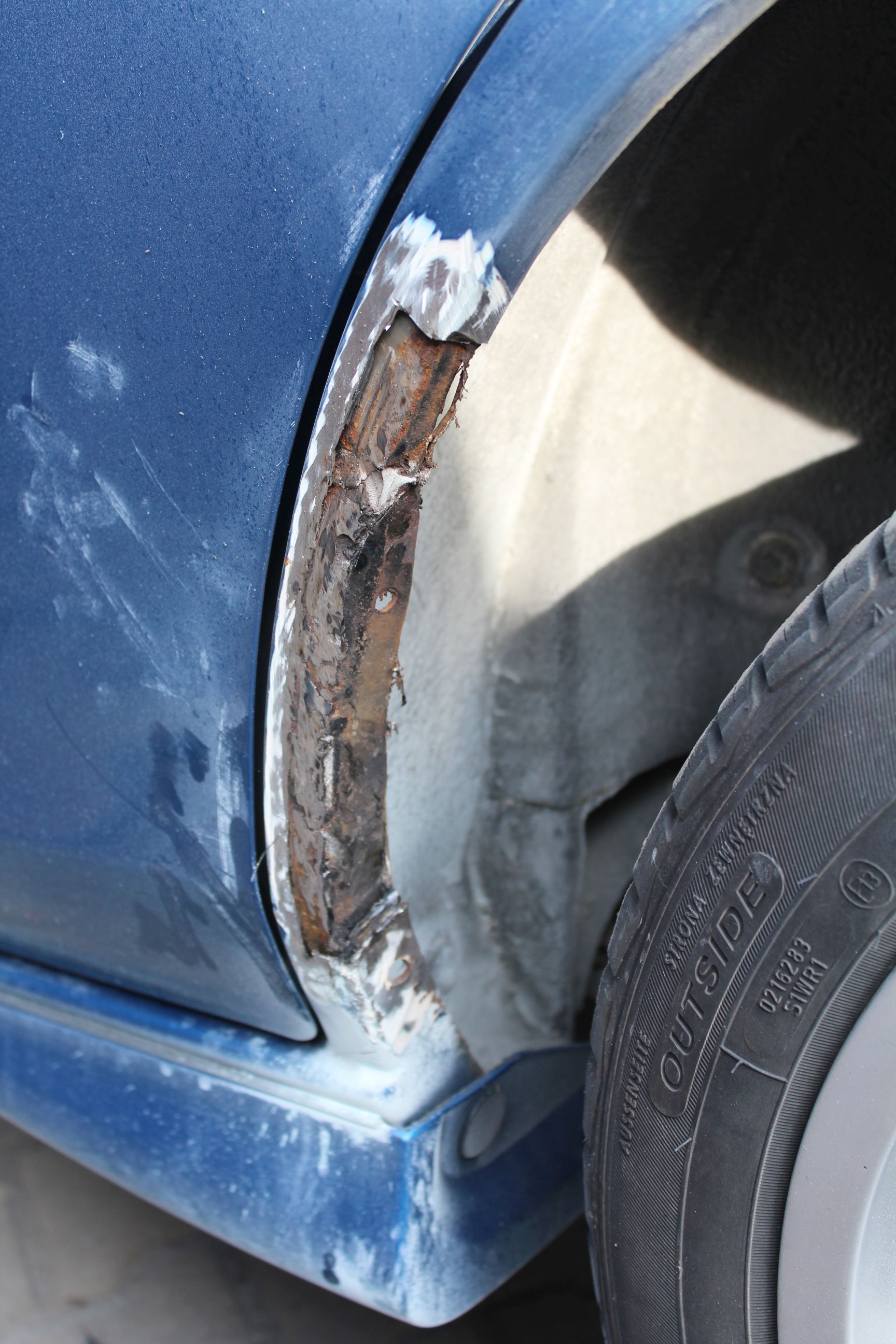 Przy okazji naprawione zostały nadkola z jednej strony bo po zeszłorocznym rzeźbieniu reperaturek coś zagazowało i zaczęlo się na nowo babrać