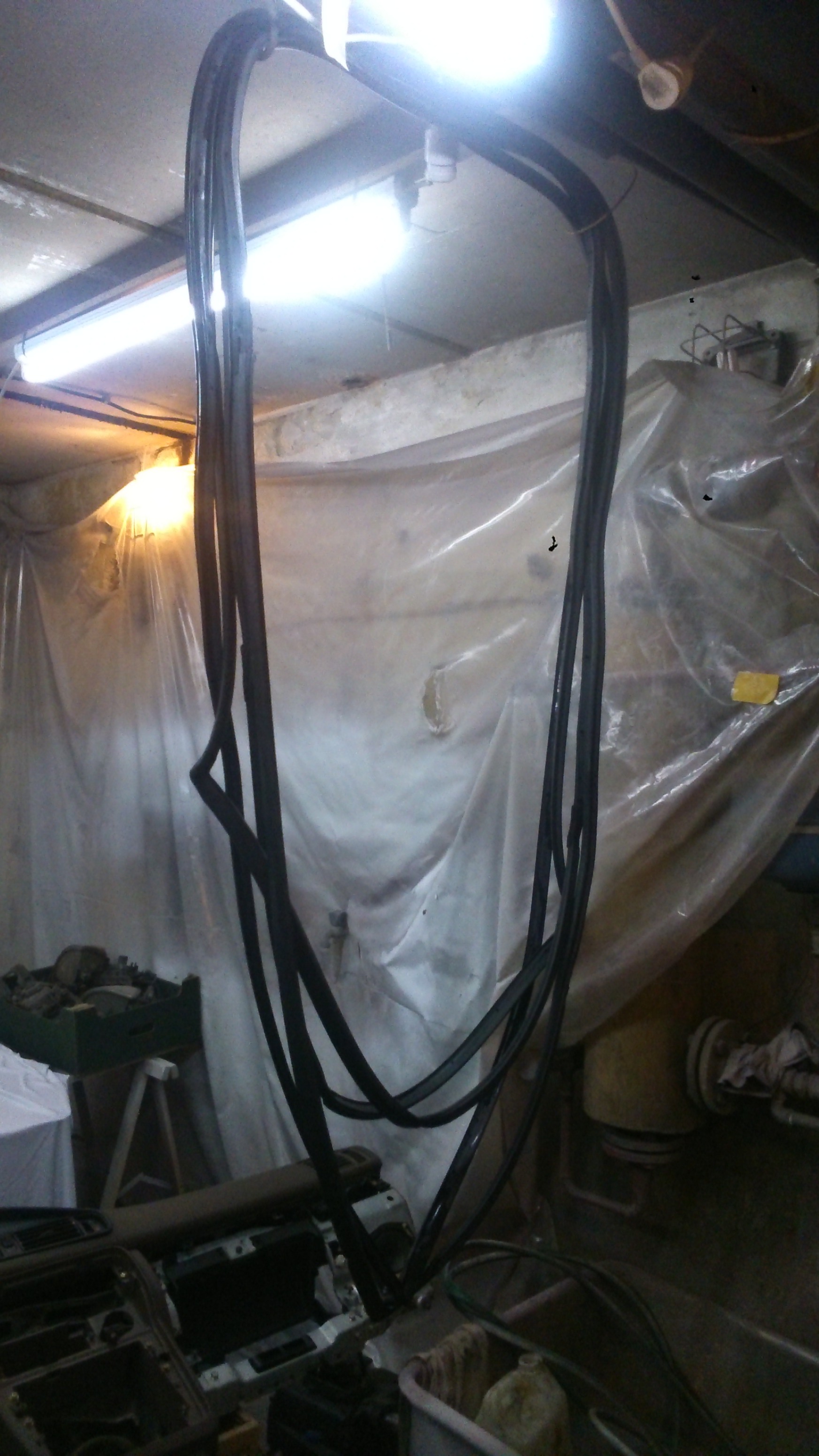 Fotka trochę jak scena z horroru i mało oddaje stan faktyczny, ale gumki sobie wiszą i schną w ciepełku