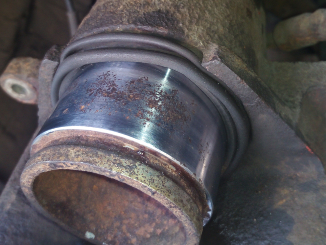 Zero smaru, bo tak jak pisałem zdjęcie jest już po oczyszczeniu tłoczka, chociaż przed też było sucho, w miejscu gdzie są wżery grubo rdzy i rdzawy pył na tłoku oraz wewnątrz gumy. Oczyszczony, odtłuszczony i przesmarowany założyłem na swoje miejsce.