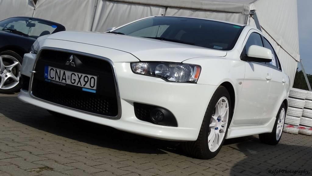 Pora napisać parę słów na temat zlotu w Poznaniu, na której byłem Lancerem i miałem okazję pojeździć po pełnej pętli Toru Poznań. Choć nie jest to maszyna torowa stworzona do takich prób, to było to naprawdę super doświadczenie i świetna zabawa :) Pełnowymiarowy tor, to jednak zupełnie co innego niż mini oesy. Misiek może nie wykręcił imponującego czasu (na co nawet nie liczyłem), ale też nie zawiódł i mimo całego dnia wkręcania na czerwone pole, nie spalił grama oleju. Nic też nie odpadło. Żeby móc pojechać trochę odważniej, przydałoby się na kupić przynajmniej na przód dodatkowy komplet felg z oponami, których nie będzie szkoda w przednionapędowym, podsterownym aucie, bo obawa o zjedzenie nowych opon, na których jeżdżę na co dzień, jednak trochę hamowała zapędy. Hamulce się spisały – była okazja w końcu porządnie je przetestować. Fajnie zaczęło mi się jeździć, kiedy zaczęło padać, Rainsporty naprawdę dają radę na mokrym.