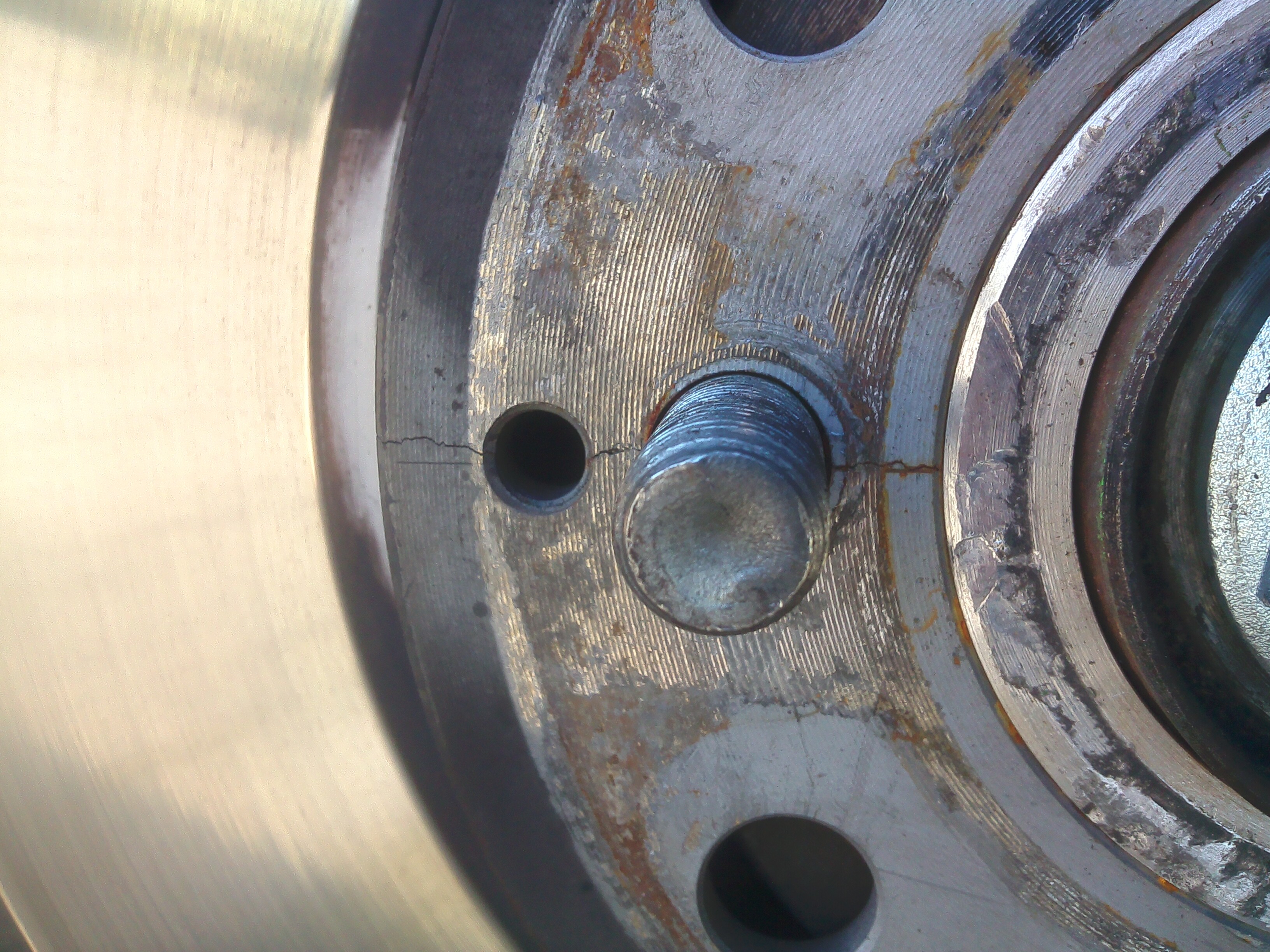 Na ostatnich 2 zdjęciach widać jak piasta trzyma tarczę. Fazy wykonane przez tokarza po wierceniu od wewnętrznej strony wydawały mi się za duże. Osobiście przemawia do mnie teoria piwo. Na 1 zdjęciu widać, że ramię nie zasłania miejsca nad otworem w przeciwieństwie do pozostałych.