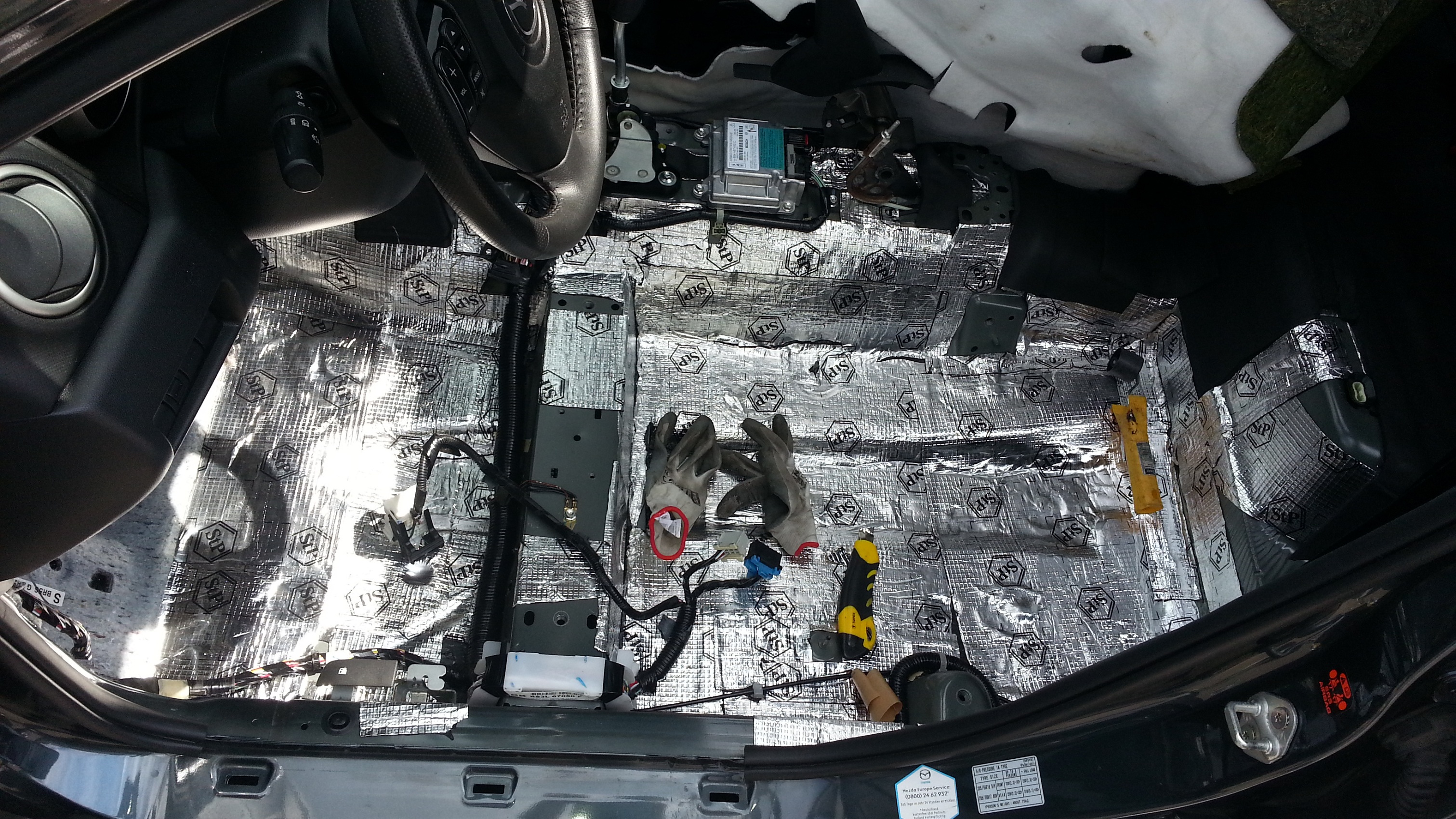 Świetną fotorelację, jak wyciszyć drzwi, opublikował naforum kolega blaze007 http://www.mazdaspeed.pl/forum/viewtopic.php?f=332&t=160687&start=164, za co mu serdecznie dziękuję! Bez niego zrobienie drzwi to byłaby mordęga, a tak w 10 godzin się z tym zamknąłem. Jedno nadkole zajmuje koło 5h, przy czym najwięcej pierd***** jest ze spinkami i śrubami (są całkowicie zabłocone i zapiaszczone – karcher niewiele pomaga), a później z ich złożeniem (jak dojdzie 2 cm wygłuszenia to ciężko spasować znowu plastiki