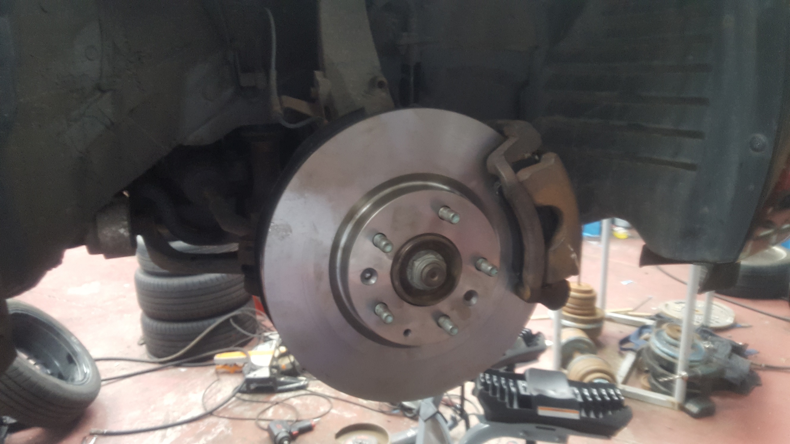 Oczywiście nie obeszło się bez zapieczonych śrubek itp, no i przydał się mimo woli zestaw naprawczy do tylnych zacisków – siem ręka omsknęła i trzeba było nowe gumki wsadzać