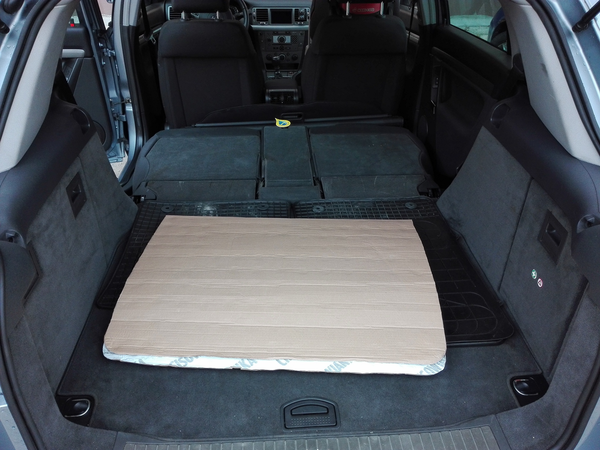 Proszę bardzo, zdjęcia wnętrza. Przód szału nie robi normalna Vectra C za to za przednimi fotelami jest istota tego modelu. Miejsca na nogi jest chyba najwięcej w tej klasie i śmiało koszykarz czy siatkarz siądzie wygodnie bez bólu nóg nawet w długą podróż. Po banalnie prostym zabiegu składania siedzeń mamy równiutką powierzchnię z bagażnikiem co jest mega praktyczne. Jak widać dziecko trafiło na miejsce piątego pasażera gdzie zostało zagospodarowane mini siedzisko a po obu stronach spokojnie sądzie dorosła osoba. Na zdjęciach tylne fotele są odsunięte max ale nawet w takiej konfiguracji miejsca w bagażniku jest dość dużo. Pierwszy raz demontowałem roletę bagażnika i jest banalnie prosta w obsłudze.
