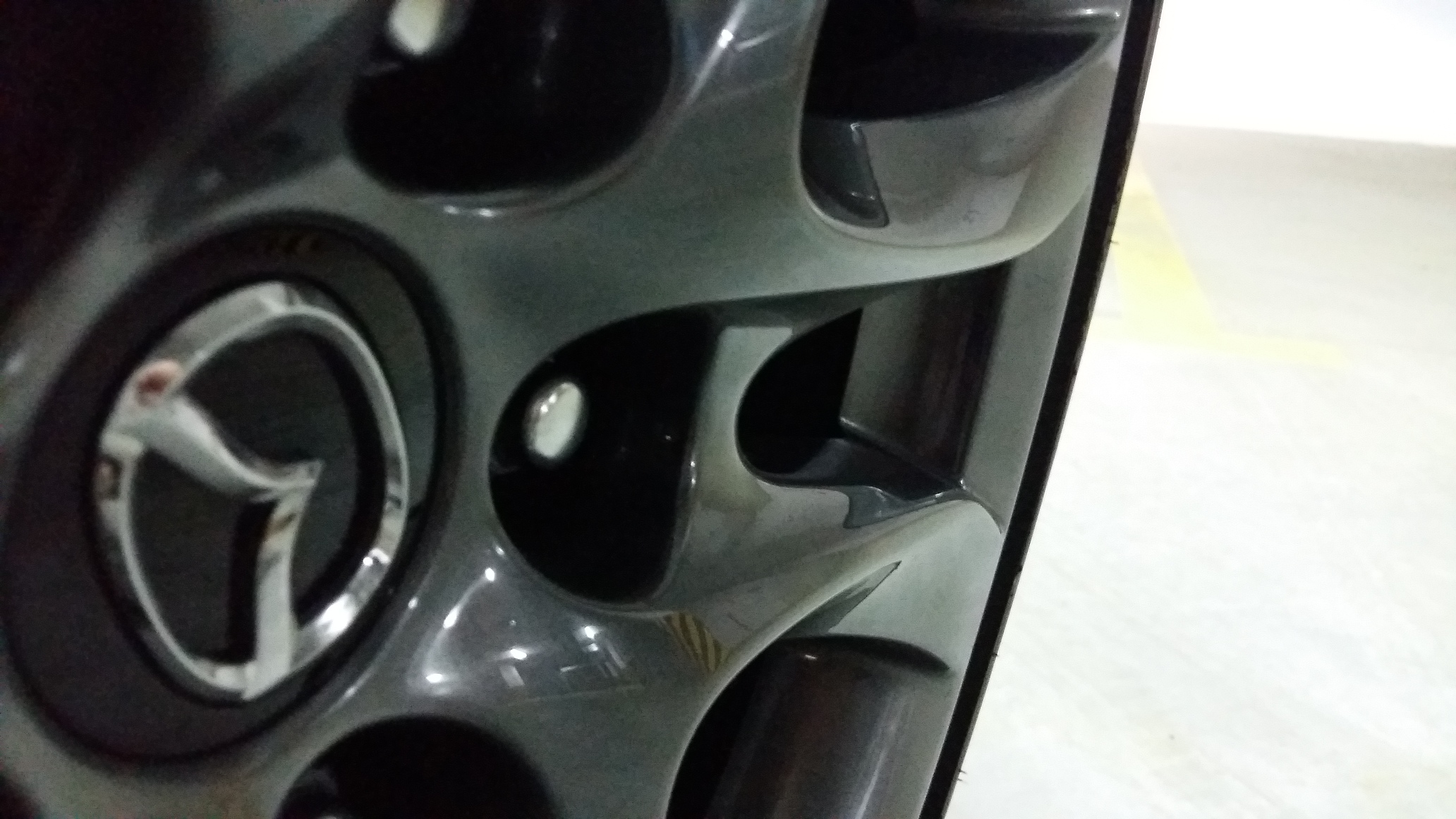 2. Pomalowanie Plasti Dip'em znaczka Mazda na kierownicy w czarny mat.