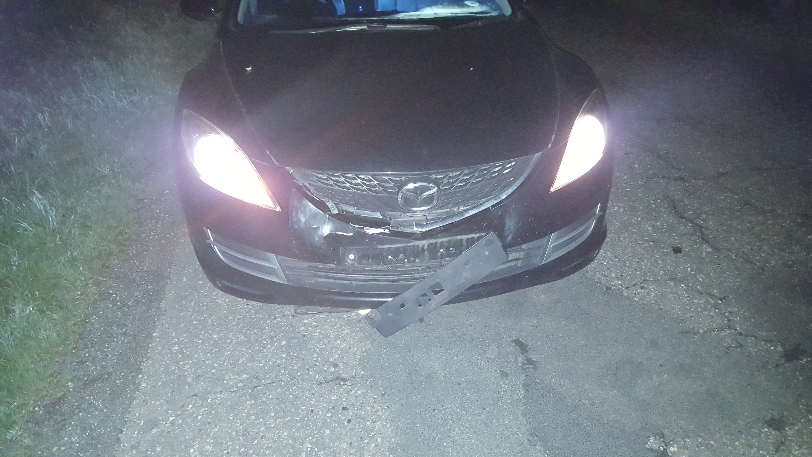 W środku nocy (około 1:00) między Szydłowem a Człopą, przy prędkości około 130 km/h pod maskę spod ziemi wyskoczył mi młody Bambi i rezultaty widać na zdjęciu :| Mazda obecnie pojechała do Przeźmierowa do autoryzowanego serwisu na naprawę, a ja dostałem auto zastepcze na 2 tygodnie mojego pobytu w Polsce... Plust taki, że nikomu nic się nie stało... Minus – całe plany związane ze spotem w Poznaniu i założeniem LPG stoi pod wielkim znakiem zapytania <płacze> <płacze> <płacze>