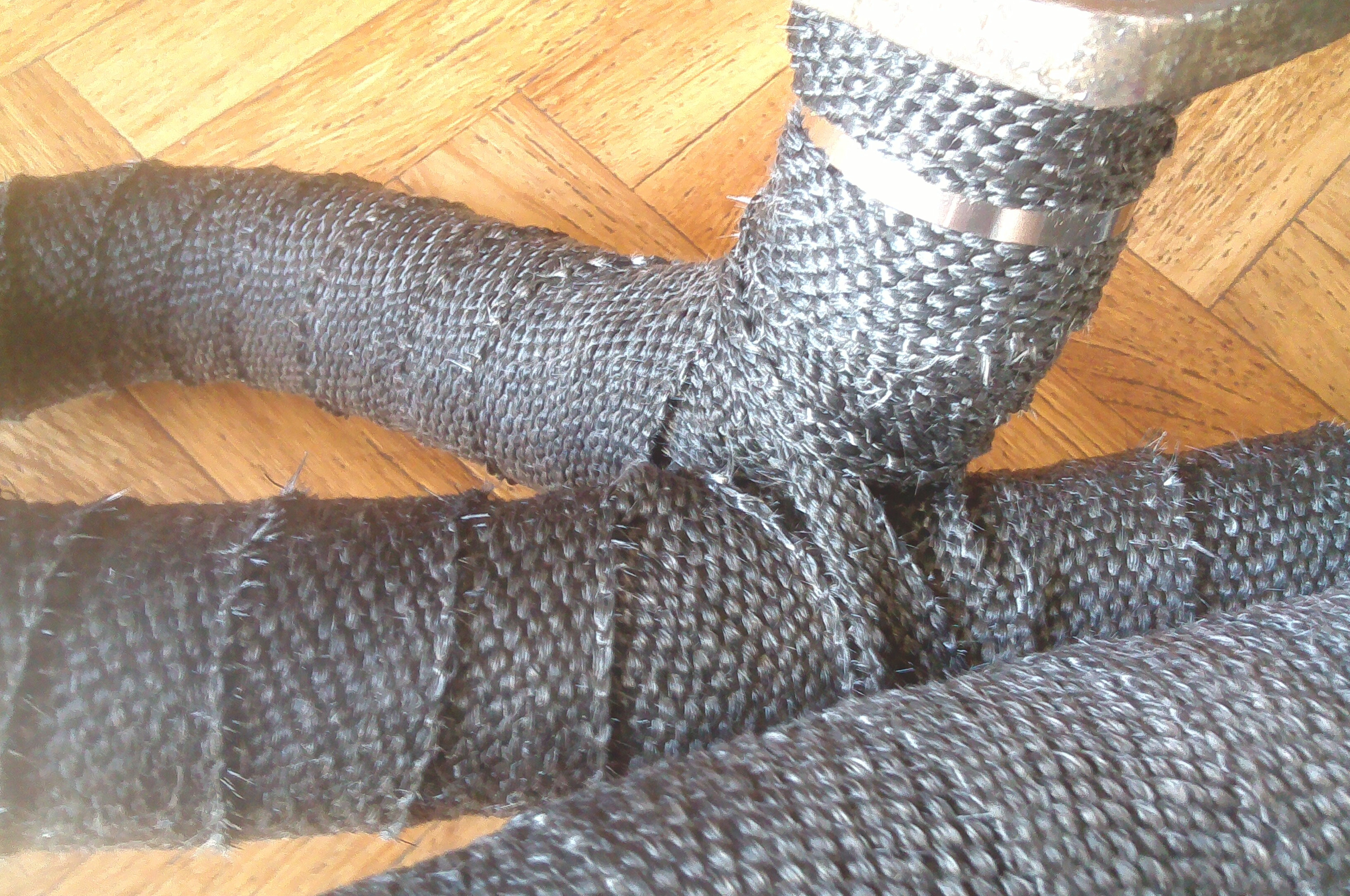 Zajmijmy się drugą stroną. Kolektor wydechowy został owinięty czarnym bandażem termoizolacyjnym FMIC.pl o szerokości 50mm i grubości 2mm. Zużyłem 18m, ale ponoć nie jestem oszczędny.