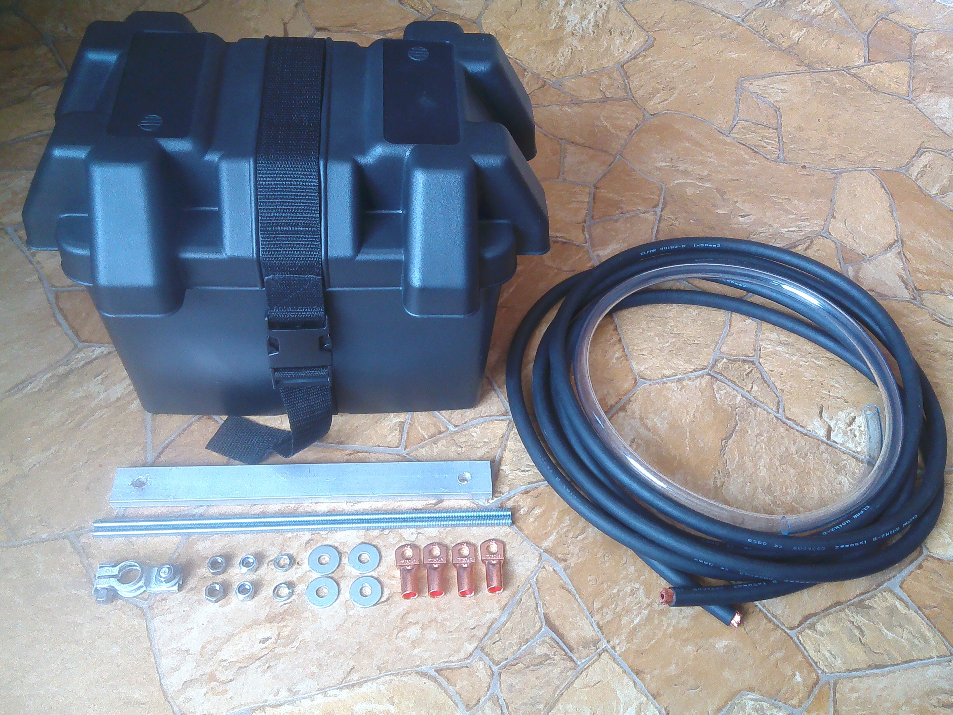 -przewód 50mm2 o długości 5m tak, żeby wystarczył na przeciwny biegun